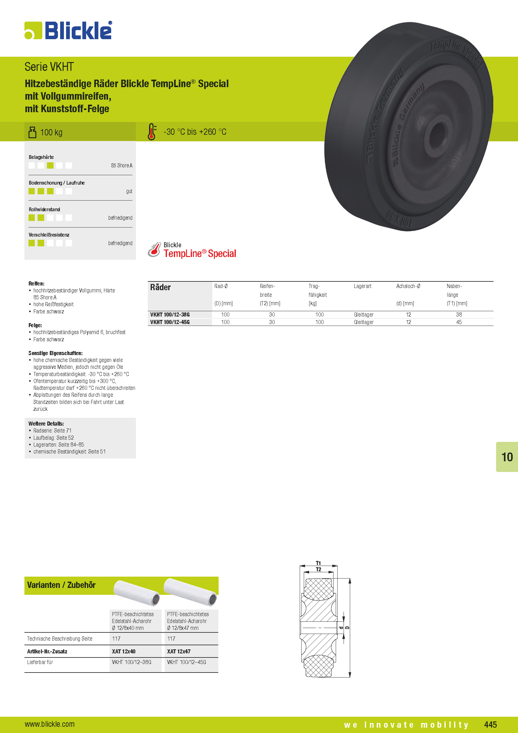 VKHT Hitzebeständige Räder Blickle TempLine® Special mit Vollgummireifen, mit Kunststoff-Felge