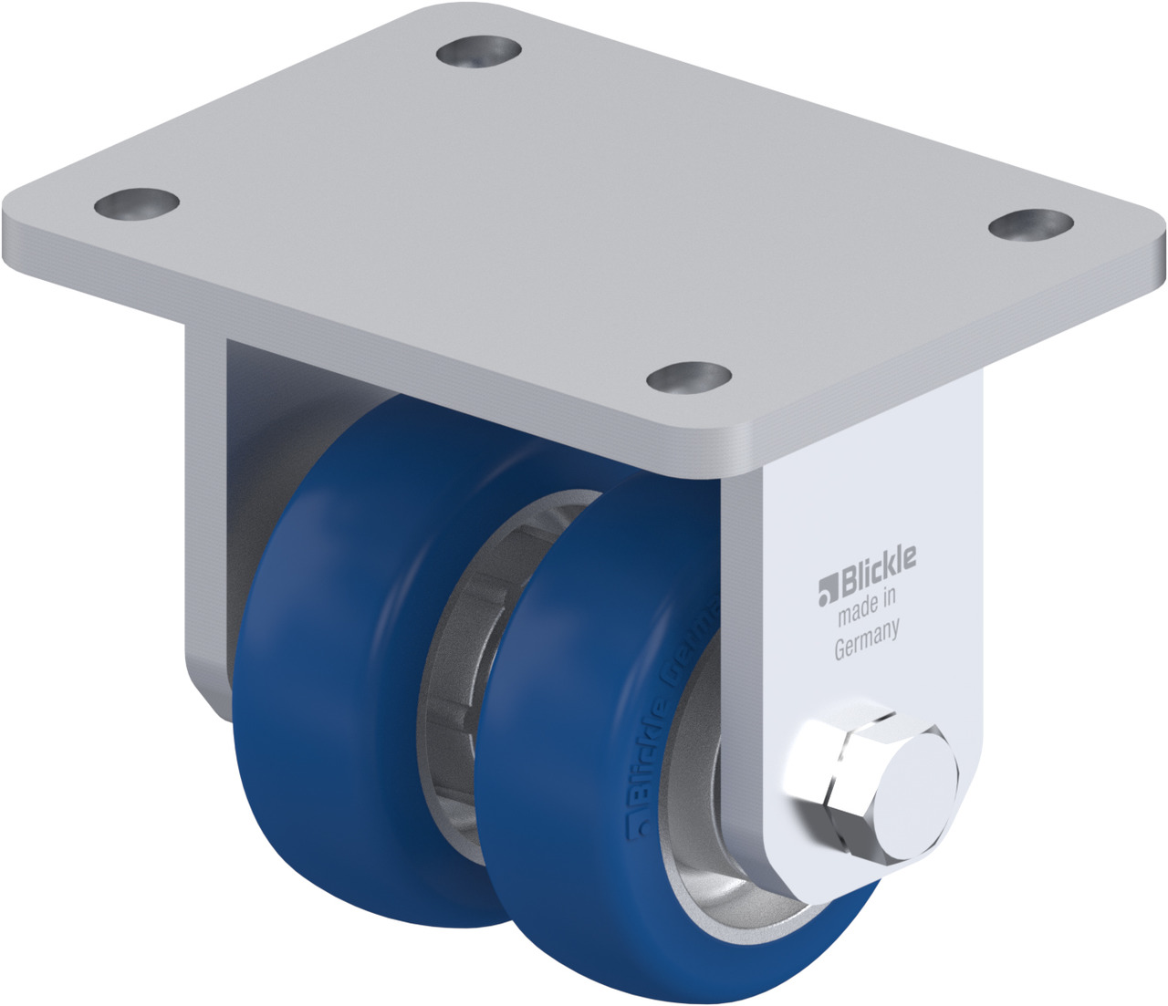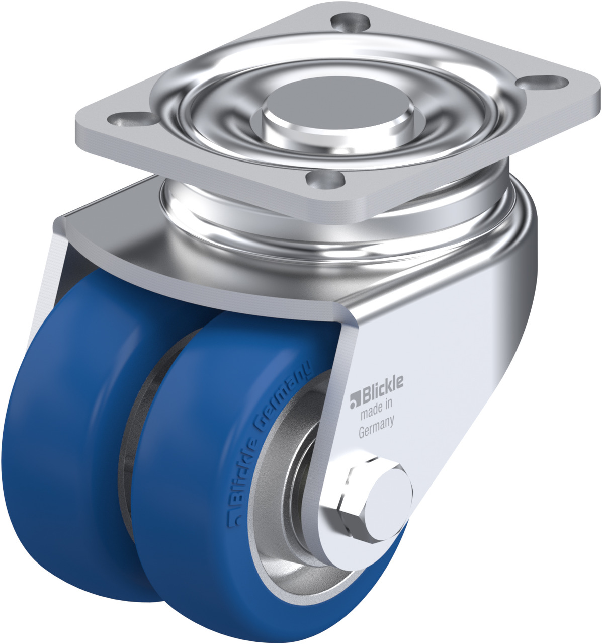 LHD-ALBS, BOD-ALBS Pressed steel twin wheel castors, heavy-duty design, with top plate, wheels with Blickle Besthane® Soft polyurethane tread