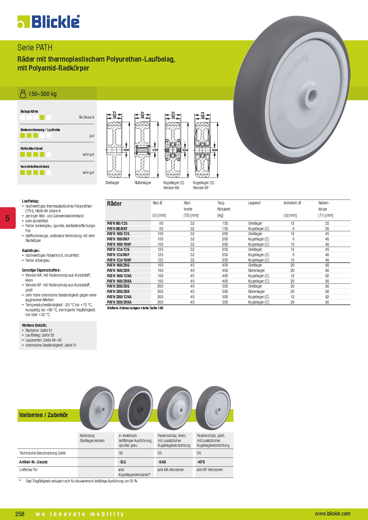 PATH Räder mit thermoplastischem Polyurethan-Laufbelag, mit Polyamid-Radkörper