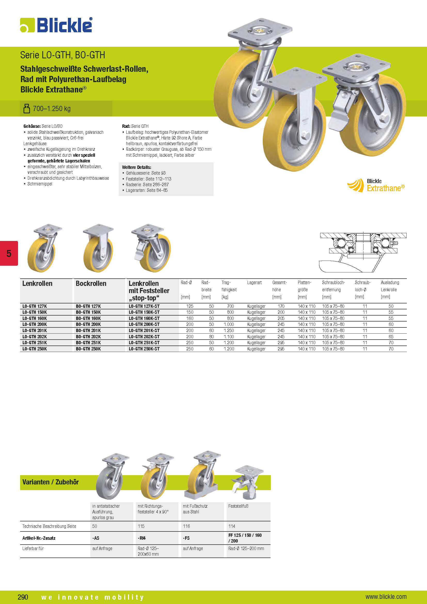 LO-GTH, BO-GTH Stahlgeschweißte Schwerlast-Rollen, Rad mit Polyurethan-Laufbelag Blickle Extrathane®