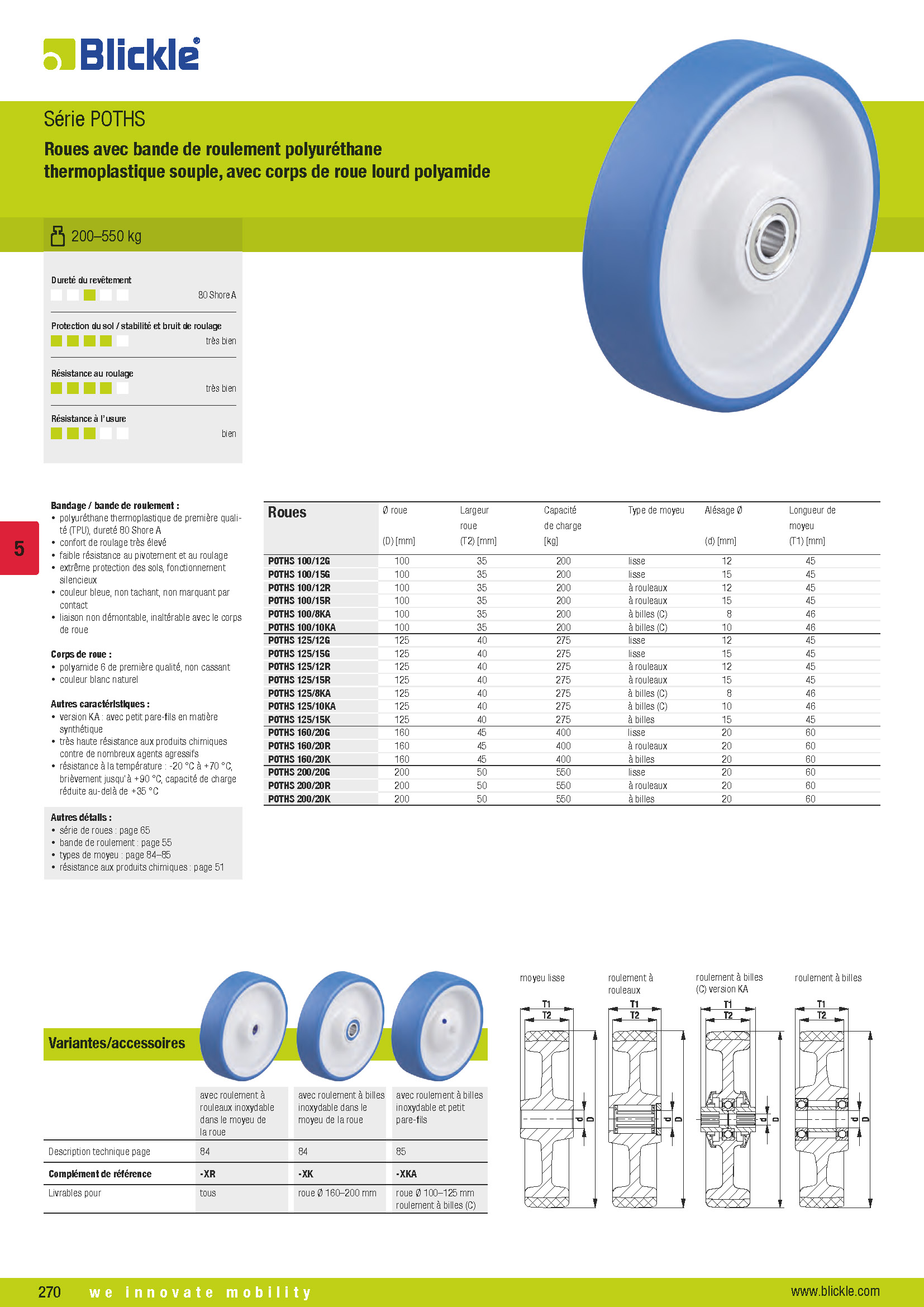 ALTH Roues fortes charges à bande de roulement polyuréthane Blickle Extrathane®, avec corps de roue aluminium