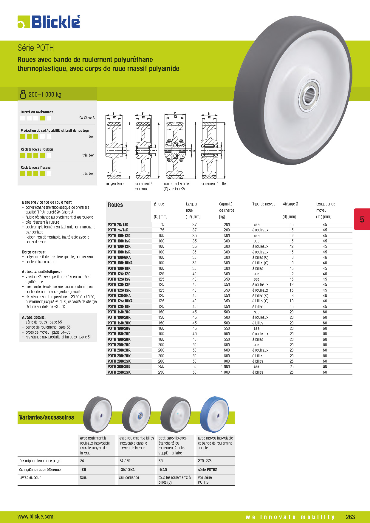 POTH Roues avec bande de roulement polyuréthane thermoplastique, avec corps de roue massif polyamide
