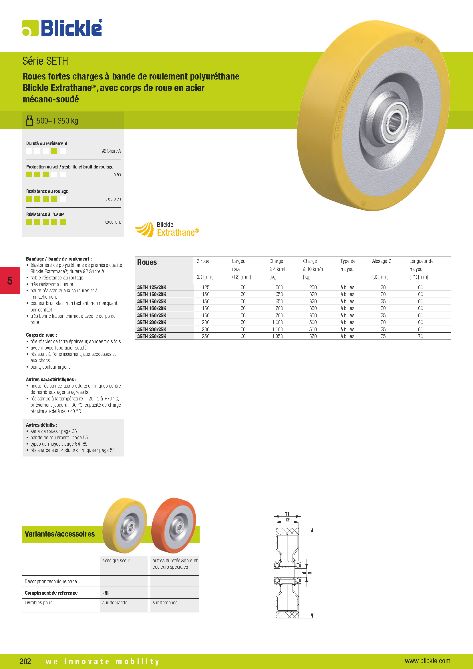 SETH Roues fortes charges à bande de roulement polyuréthane Blickle Extrathane®, avec corps de roue en acier mécano-soudé