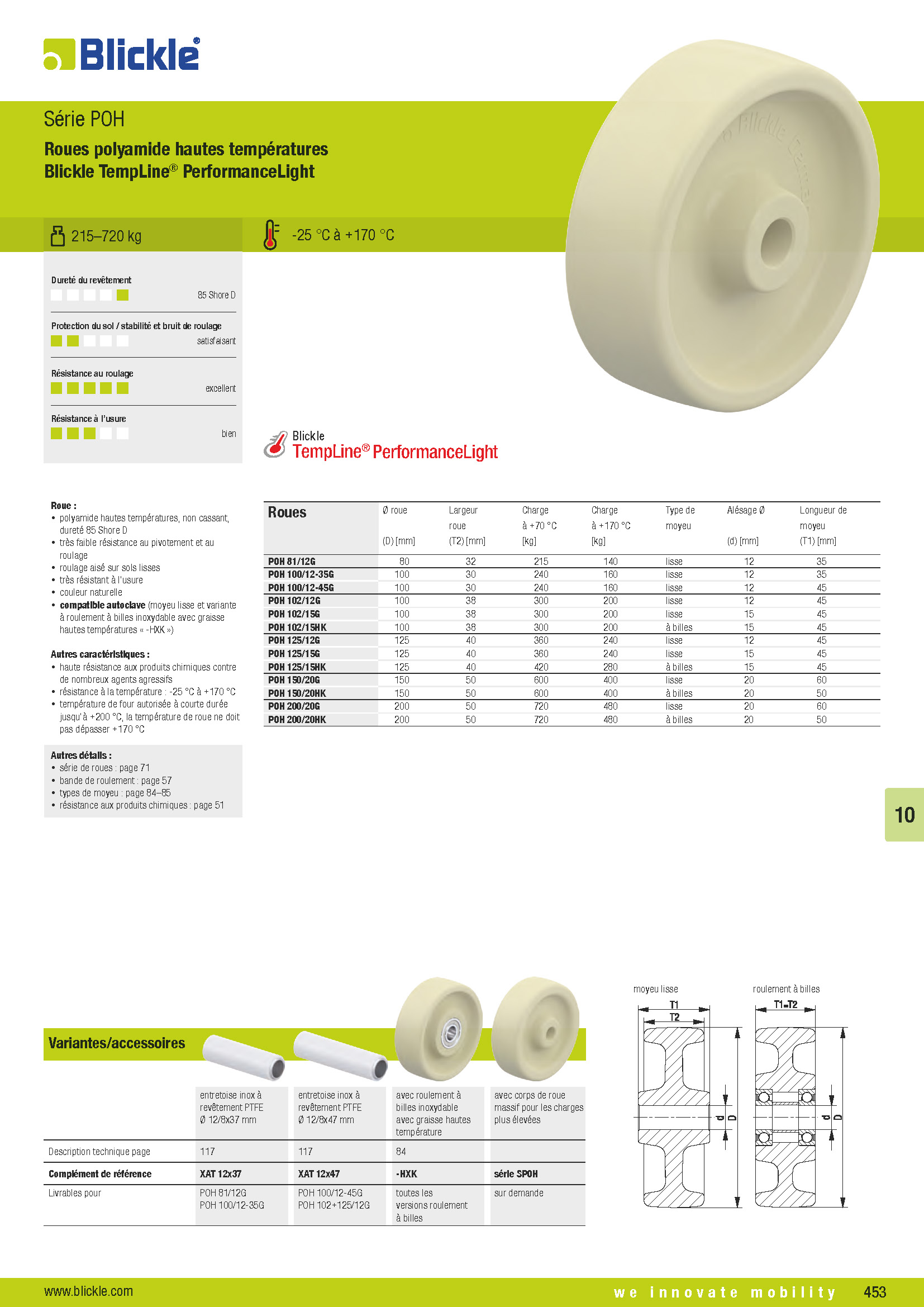POH Roues polyamide hautes températures Blickle TempLine® PerformanceLight