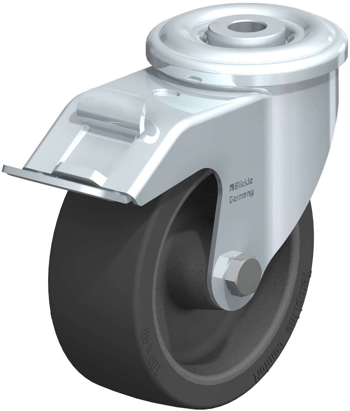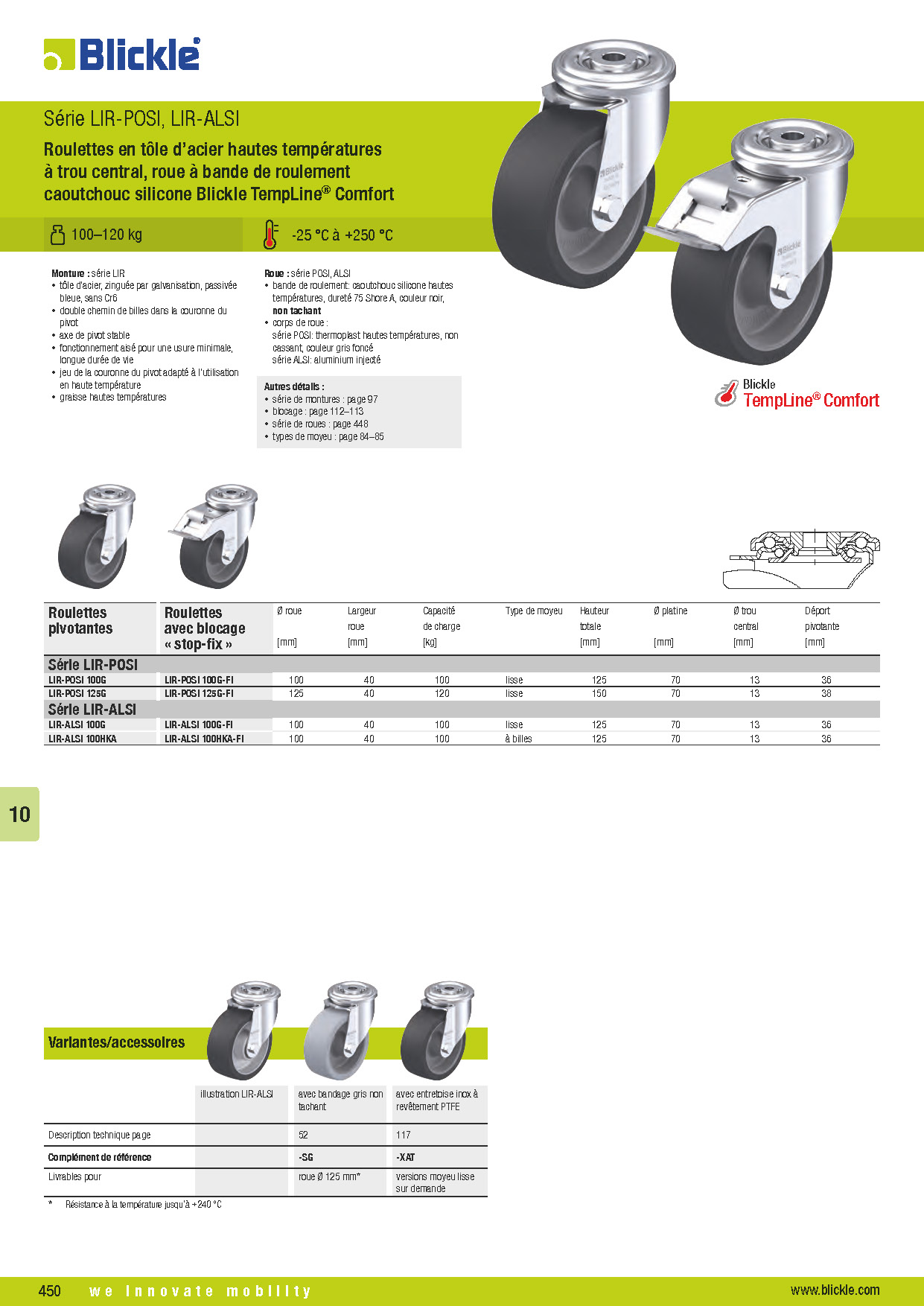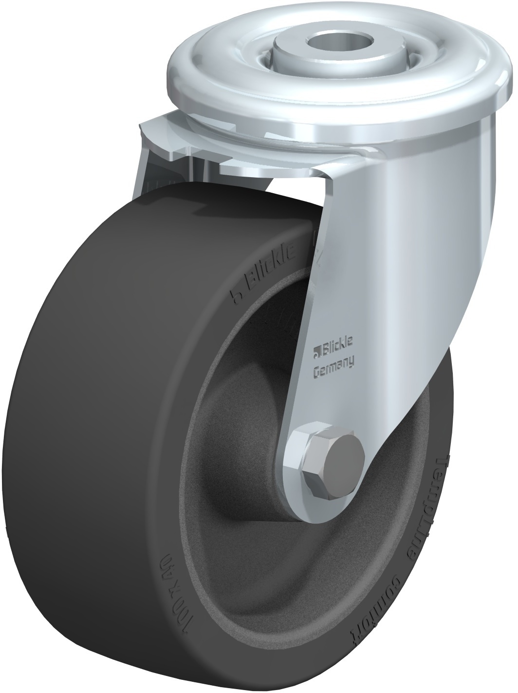 LIR-POSI, LIR-ALSI Hitzebeständige Stahlblech-Rollen mit Rückenloch, Rad mit Silikon-Gummi- Laufbelag Blickle TempLine® Comfort
