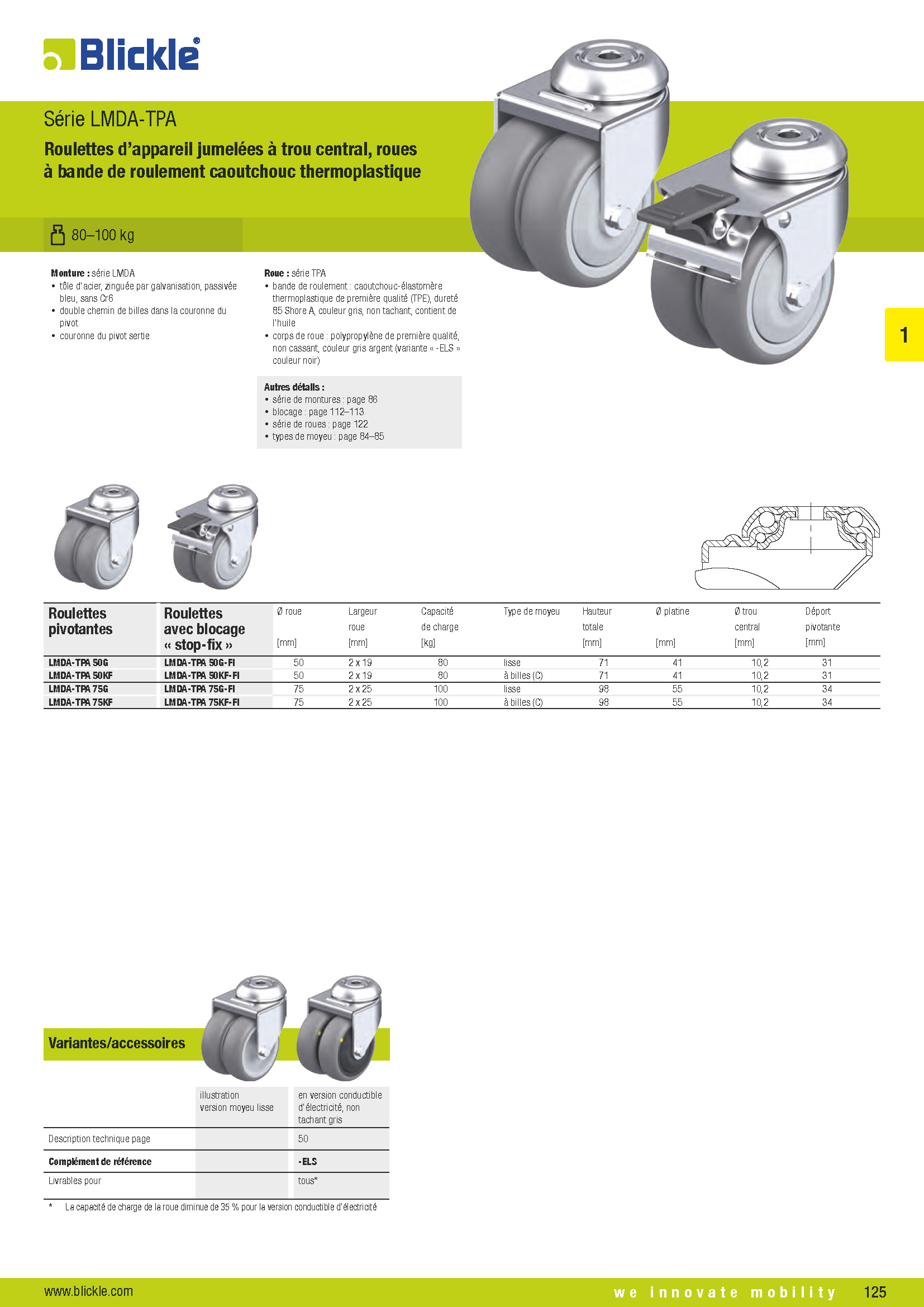 Preview: Roulettes avec blocage "stop-fix" moyeu lisse G