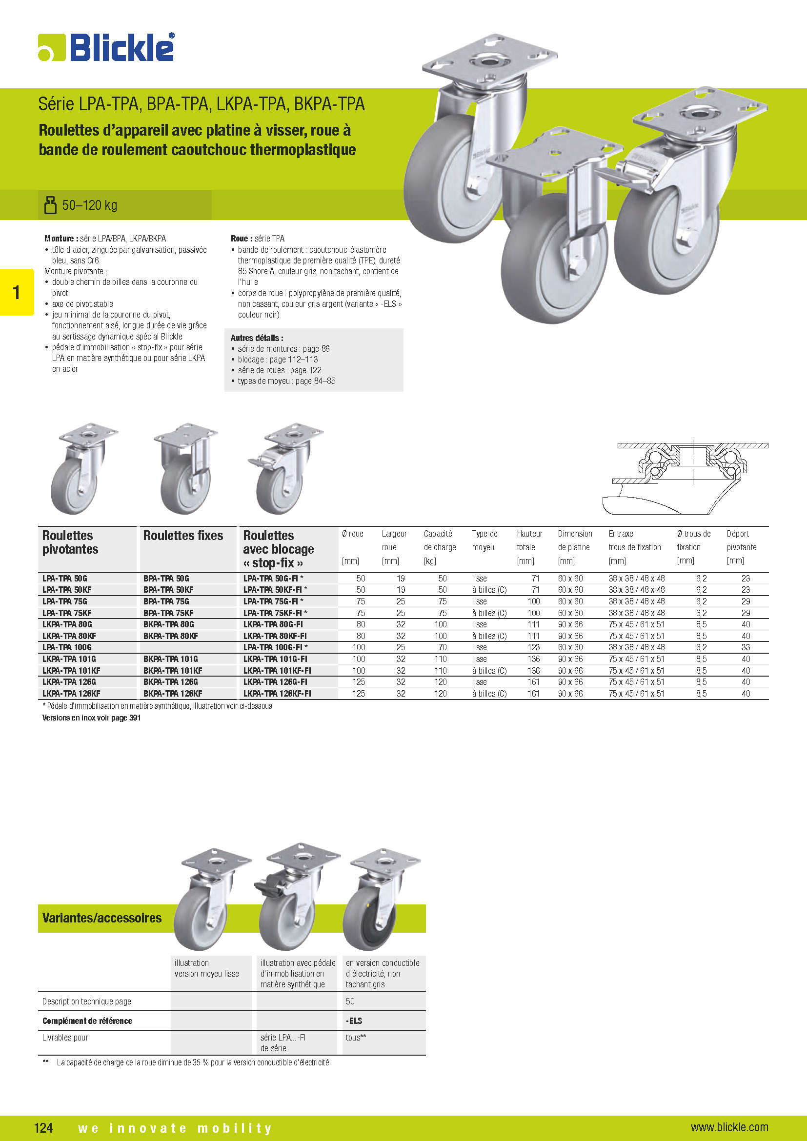 LPA-TPA, BPA-TPA, LKPA-TPA, BKPA-TPA series Light duty castors with top plate, wheel with thermoplastic rubber tread