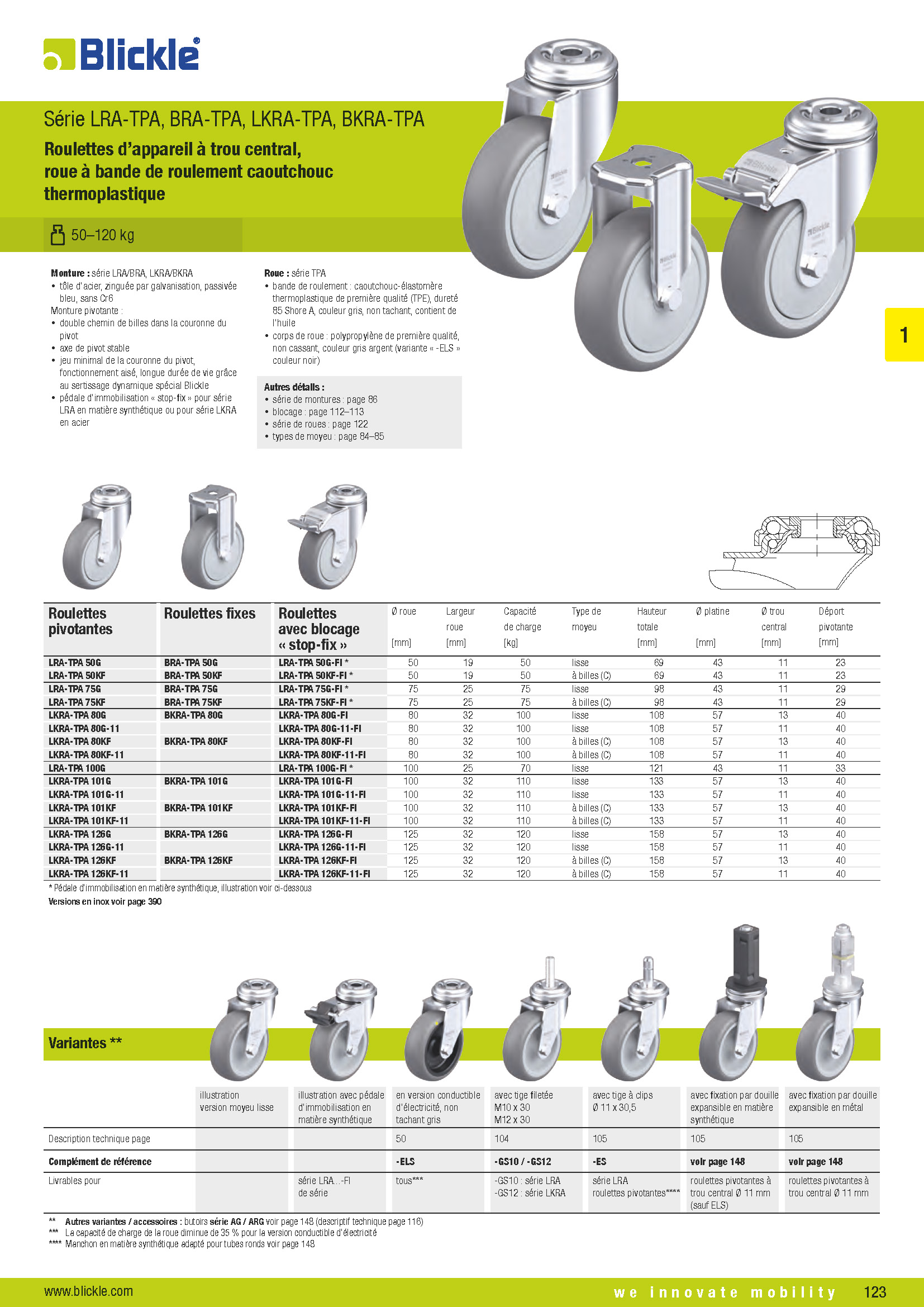 LRA-TPA, BRA-TPA, LKRA-TPA, BKRA-TPA Roulettes d’appareil à trou central, roue à bande de roulement caoutchouc thermoplastique