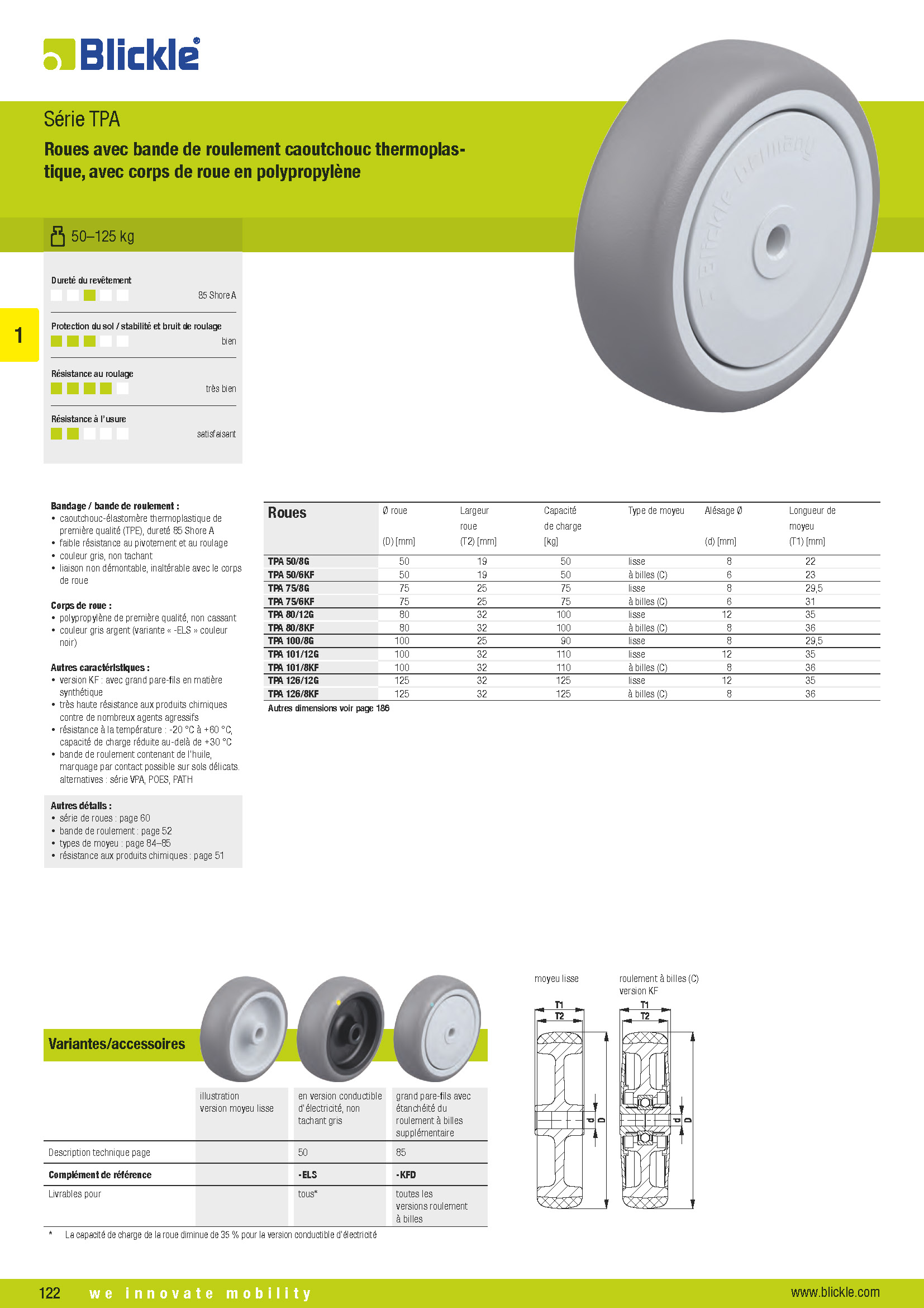 Roues avec bande de roulement caoutchouc thermoplastique, avec corps de roue en polypropylène