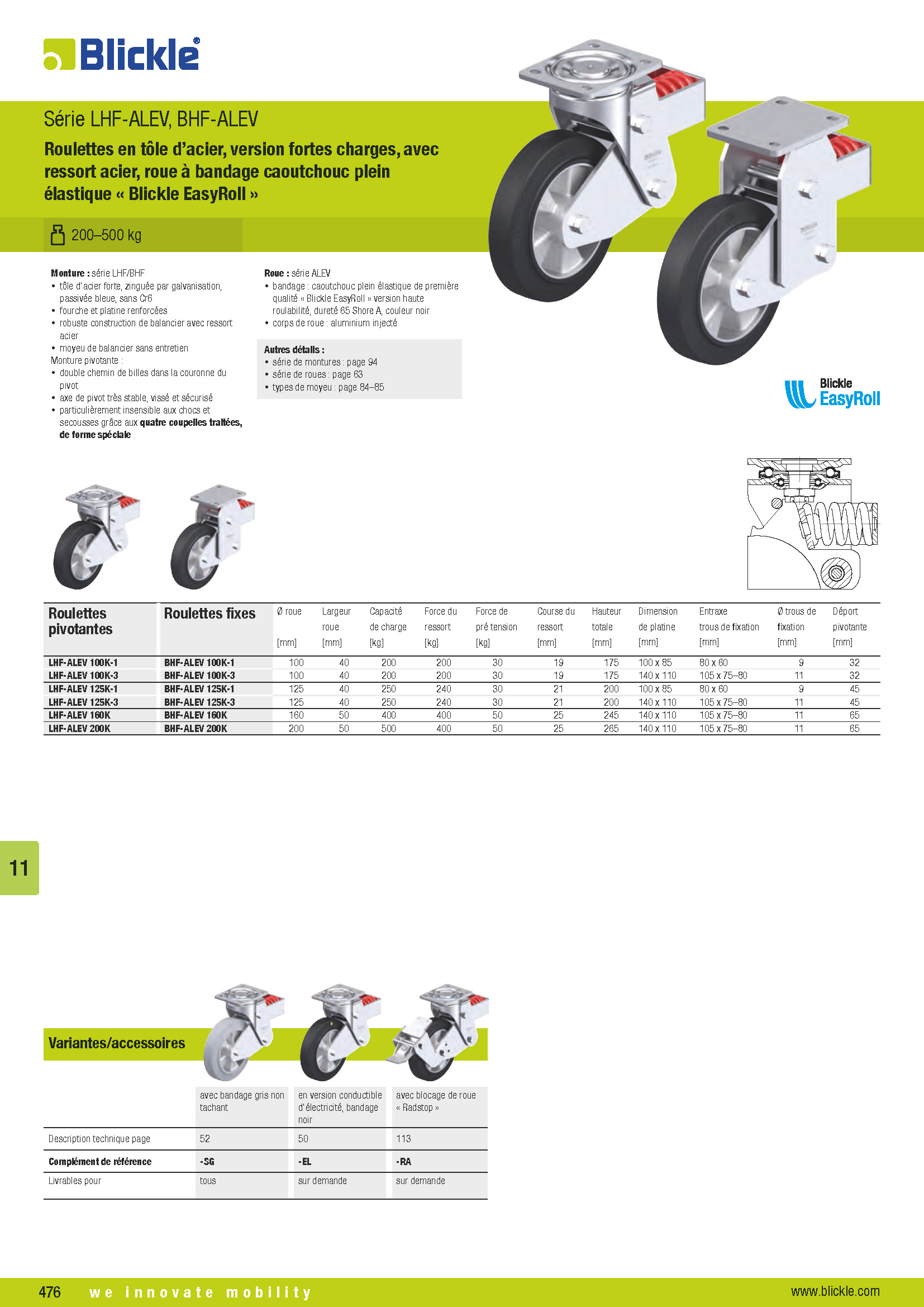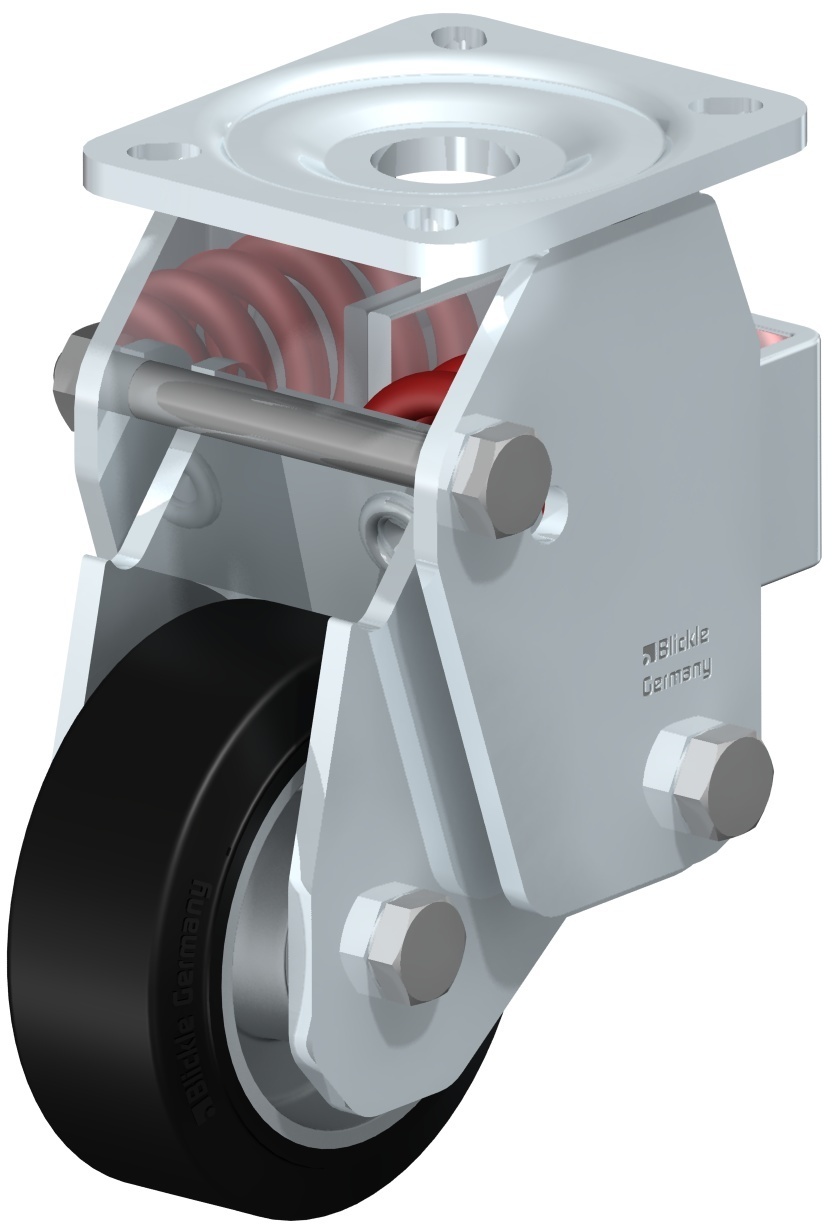 LHF-ALEV, BHF-ALEV Roulettes en tôle d’acier, version fortes charges, avec ressort acier, roue à bandage caoutchouc plein élastique « Blickle EasyRoll »