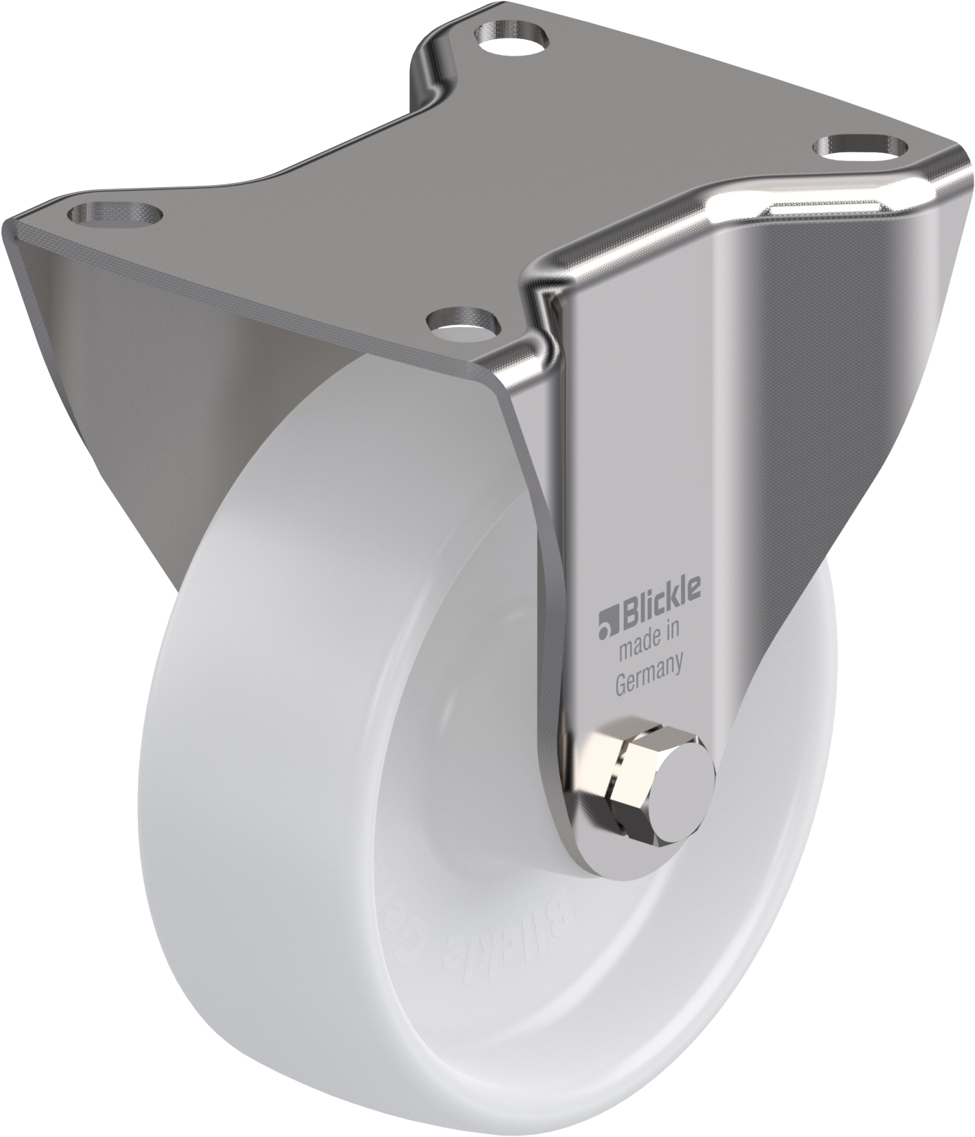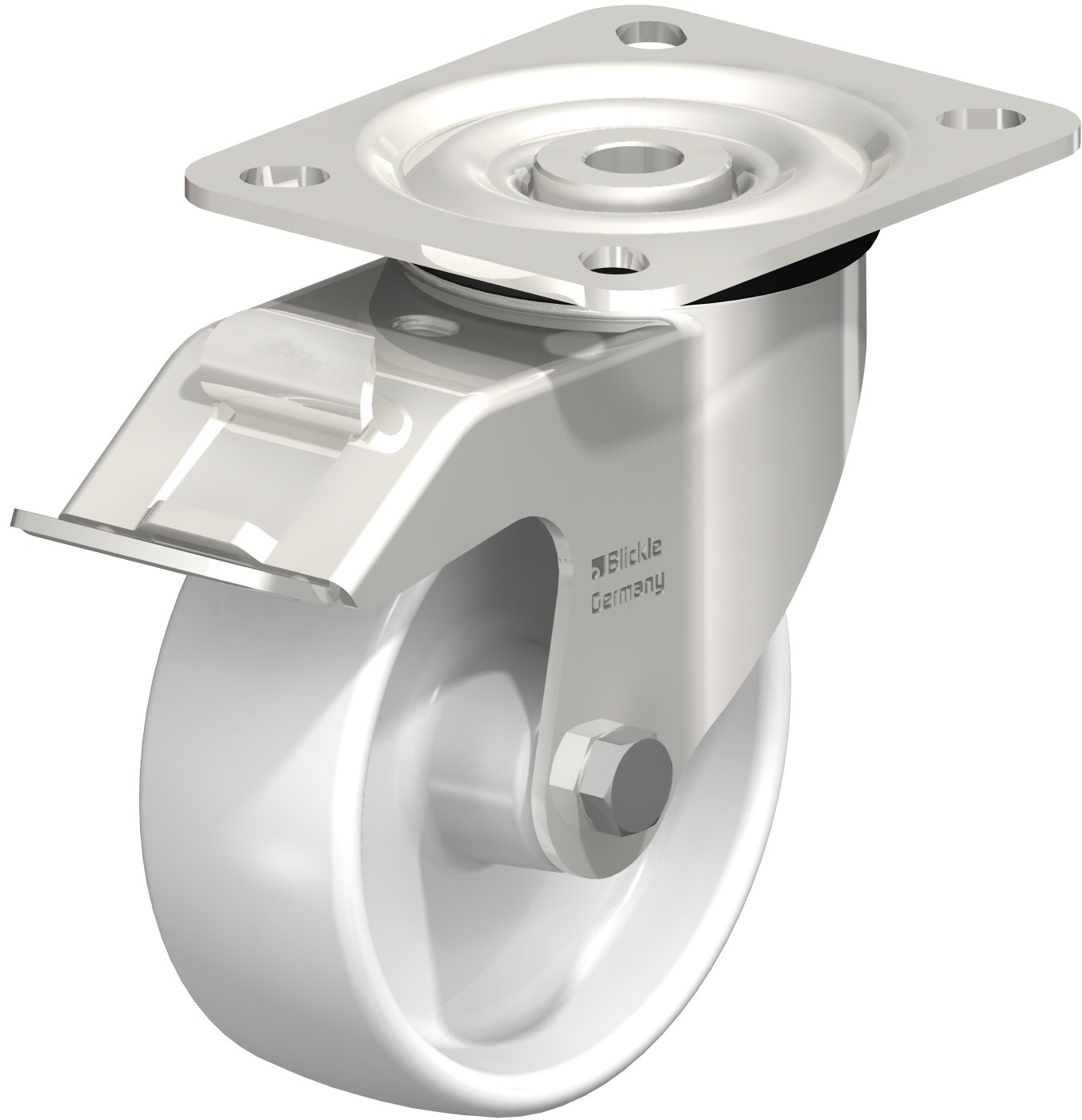 LX-PO, BX-PO Roulettes en acier inox, version mi-lourde, avec platine à visser, avec roue polyamide