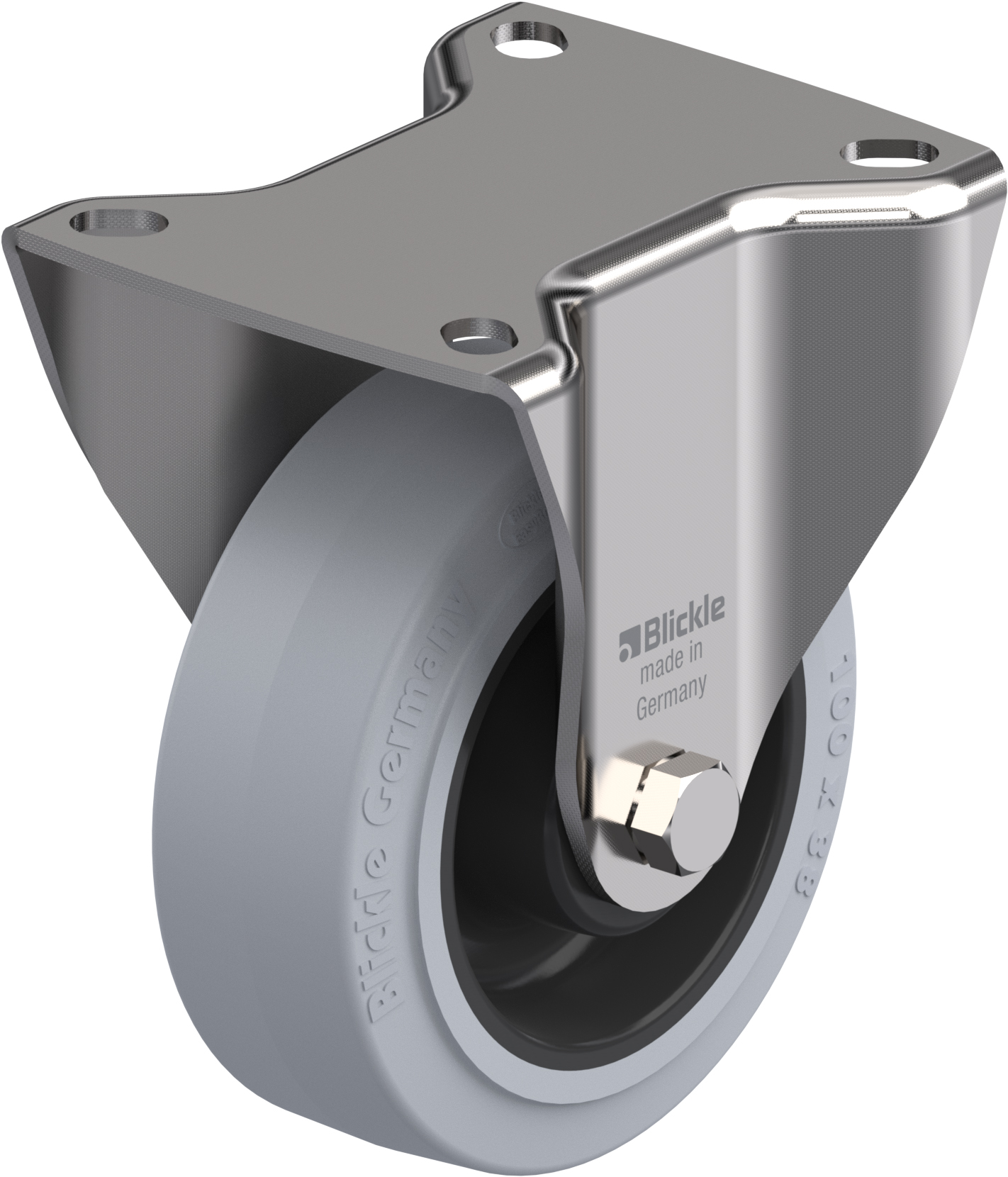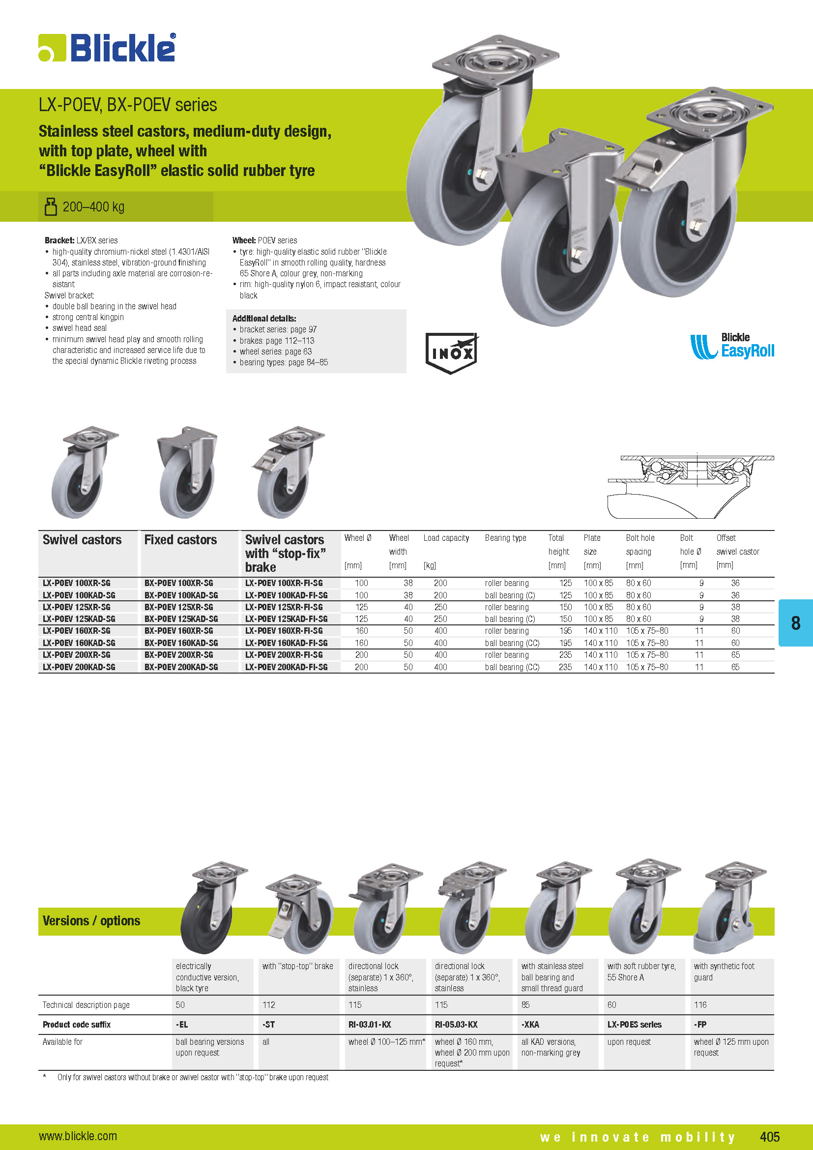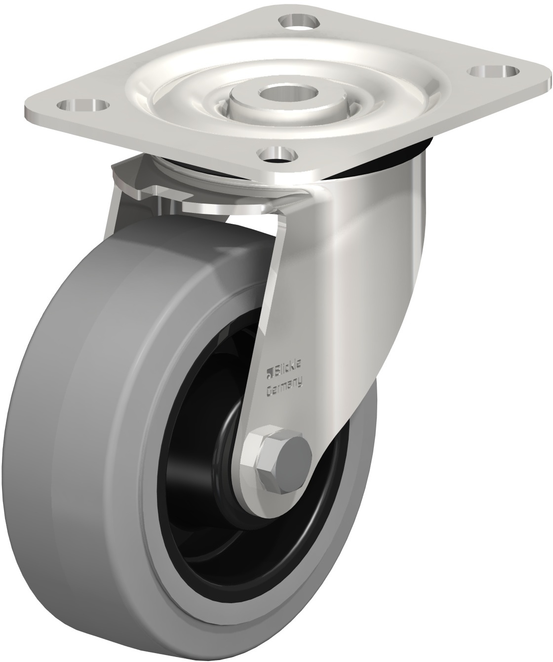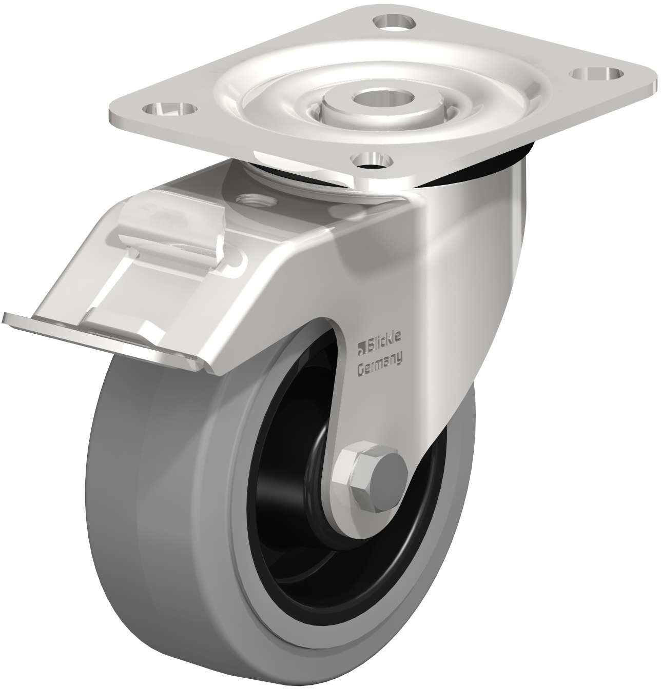 LX-POEV, BX-POEV Stainless steel castors, medium-duty design, with top plate, wheel with“Blickle EasyRoll” elastic solid rubber tyr