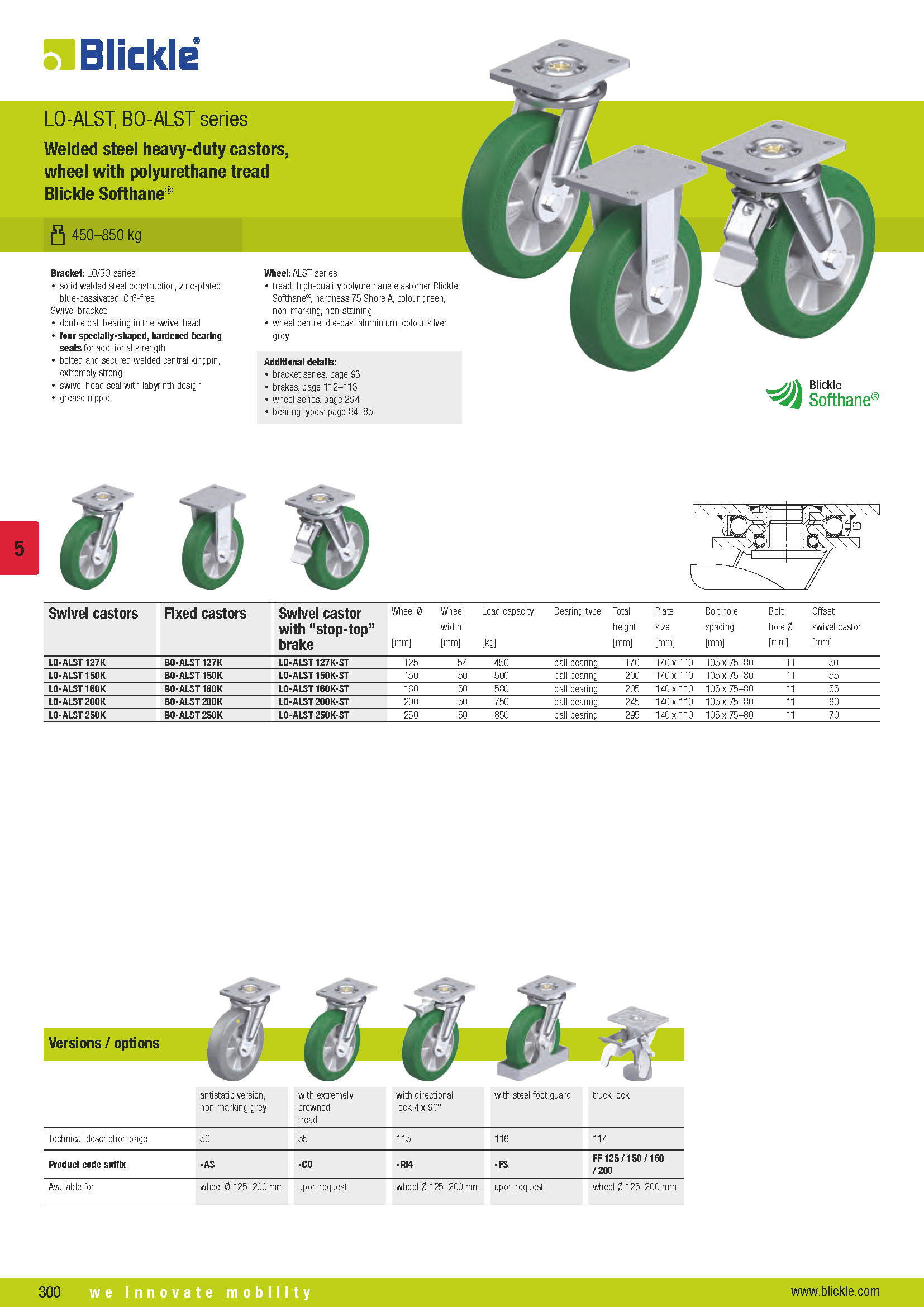 LO-ALST, BO-ALST Stahlgeschweißte Schwerlast-Rollen, Rad mit Polyurethan-Laufbelag Blickle Softhane®