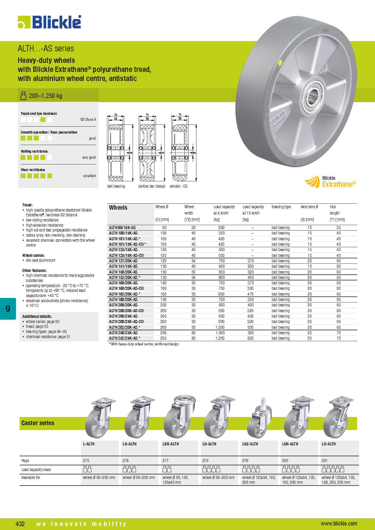 ALTH-AS Heavy-duty wheels with Blickle Extrathane® polyurethane tread, with aluminium wheel centre, antistatic