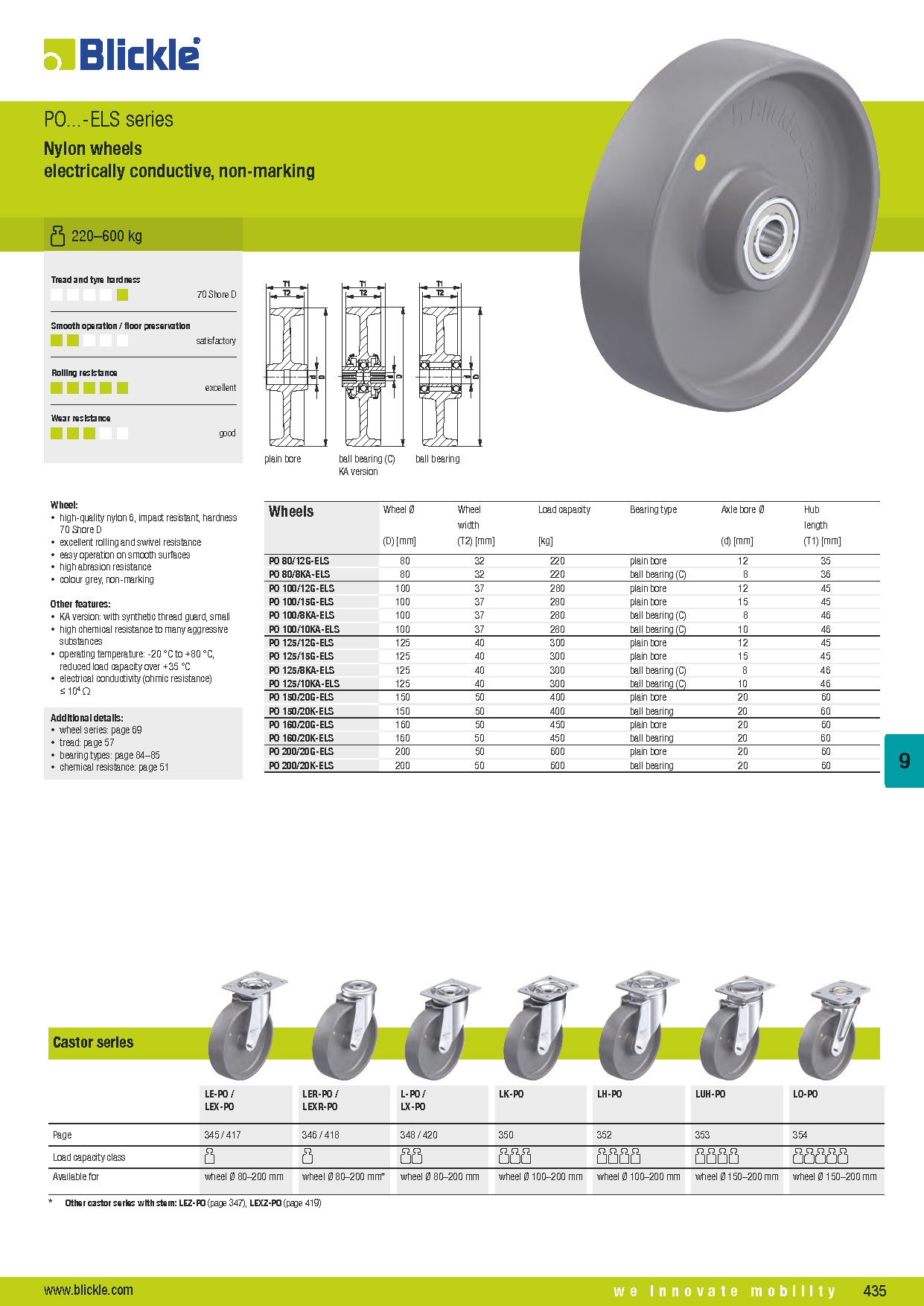 PO-ELS Nylon wheels electrically conductive, non-marking