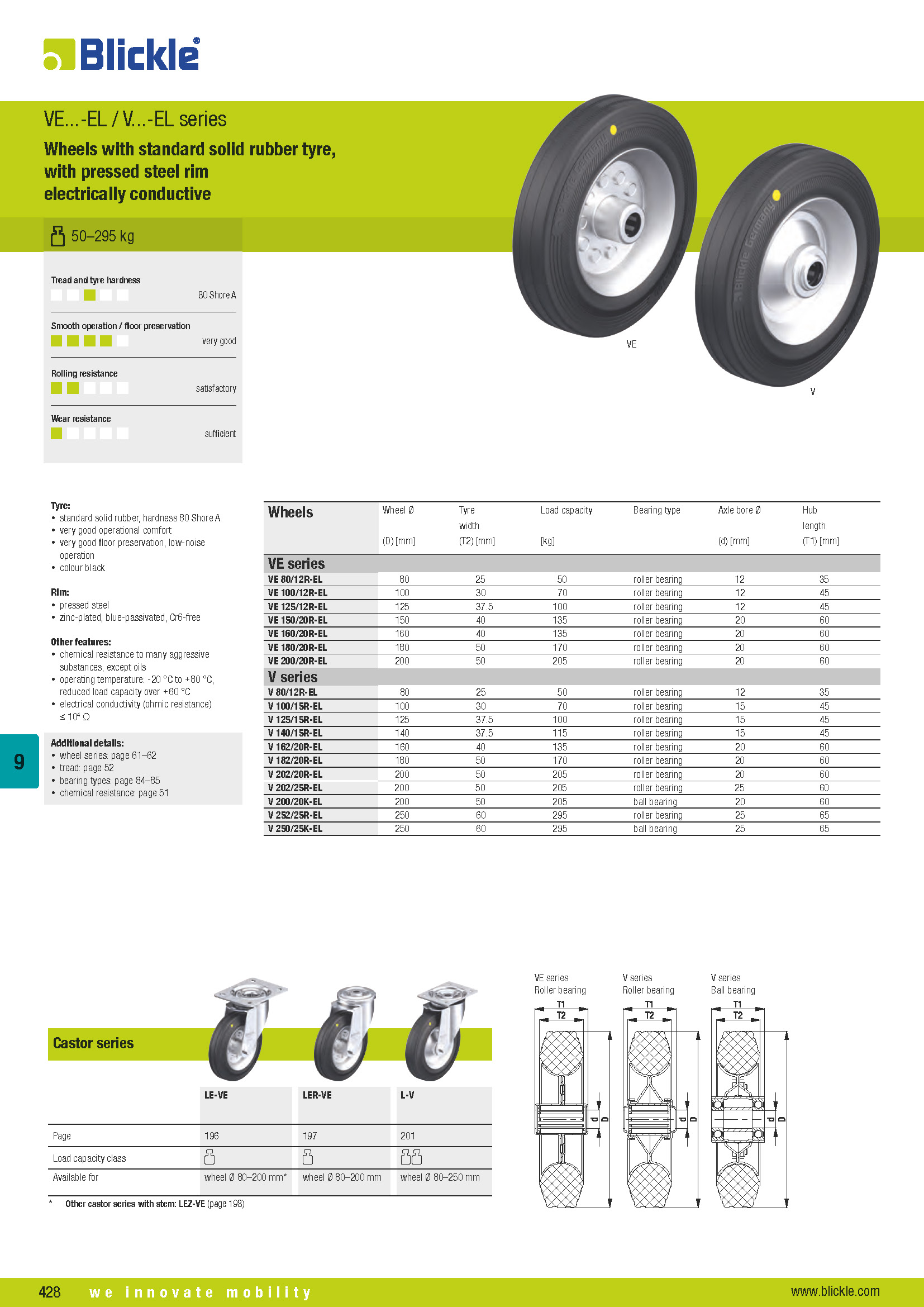 VE-V-EL Wheels with standard solid rubber tyre, with pressed steel rim electrically conductive