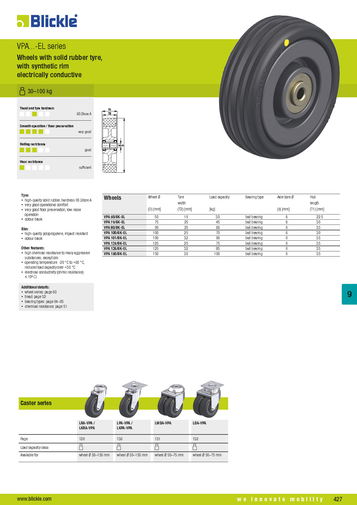 VPA-EL Wheels with solid rubber tyre, with synthetic rim electrically conductive - Kopie