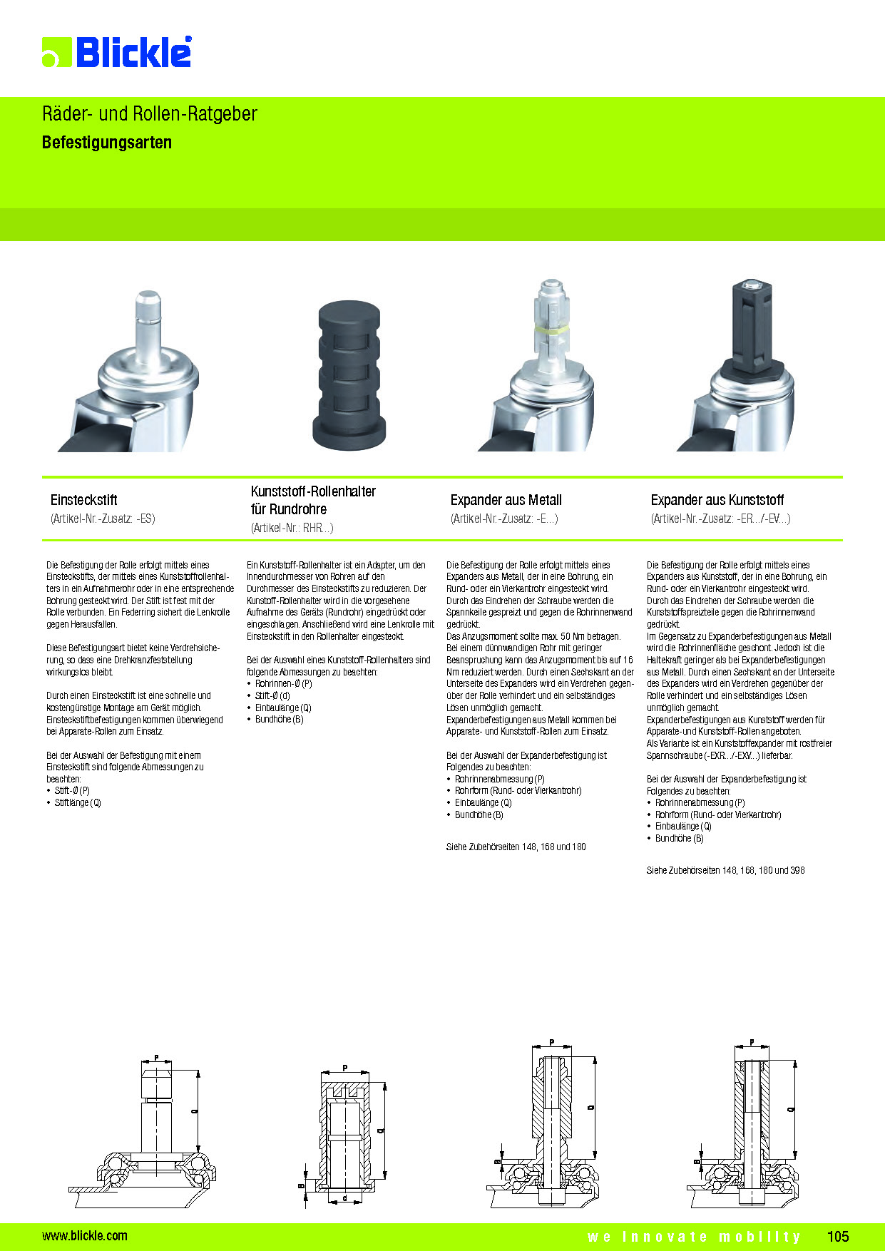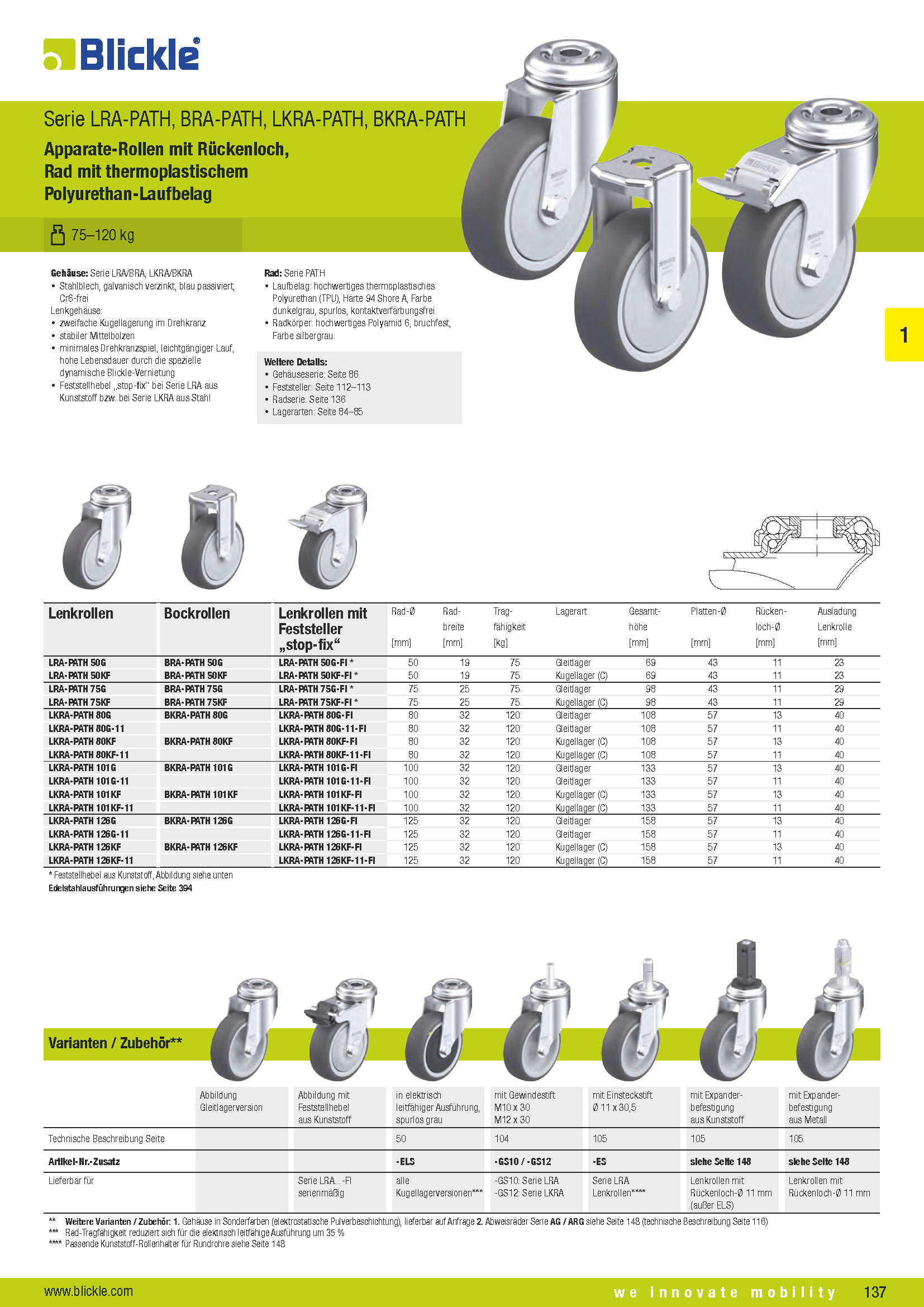 Lenkrolle mit Kugellager Lenkrollen mit Feststeller „stop-fix“ Kugellager KF