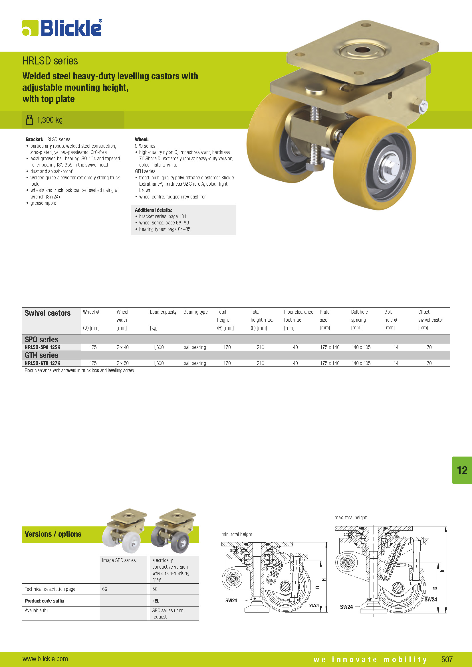 HRLSD Welded steel heavy-duty levelling castors with adjustable mounting height, with top plate
