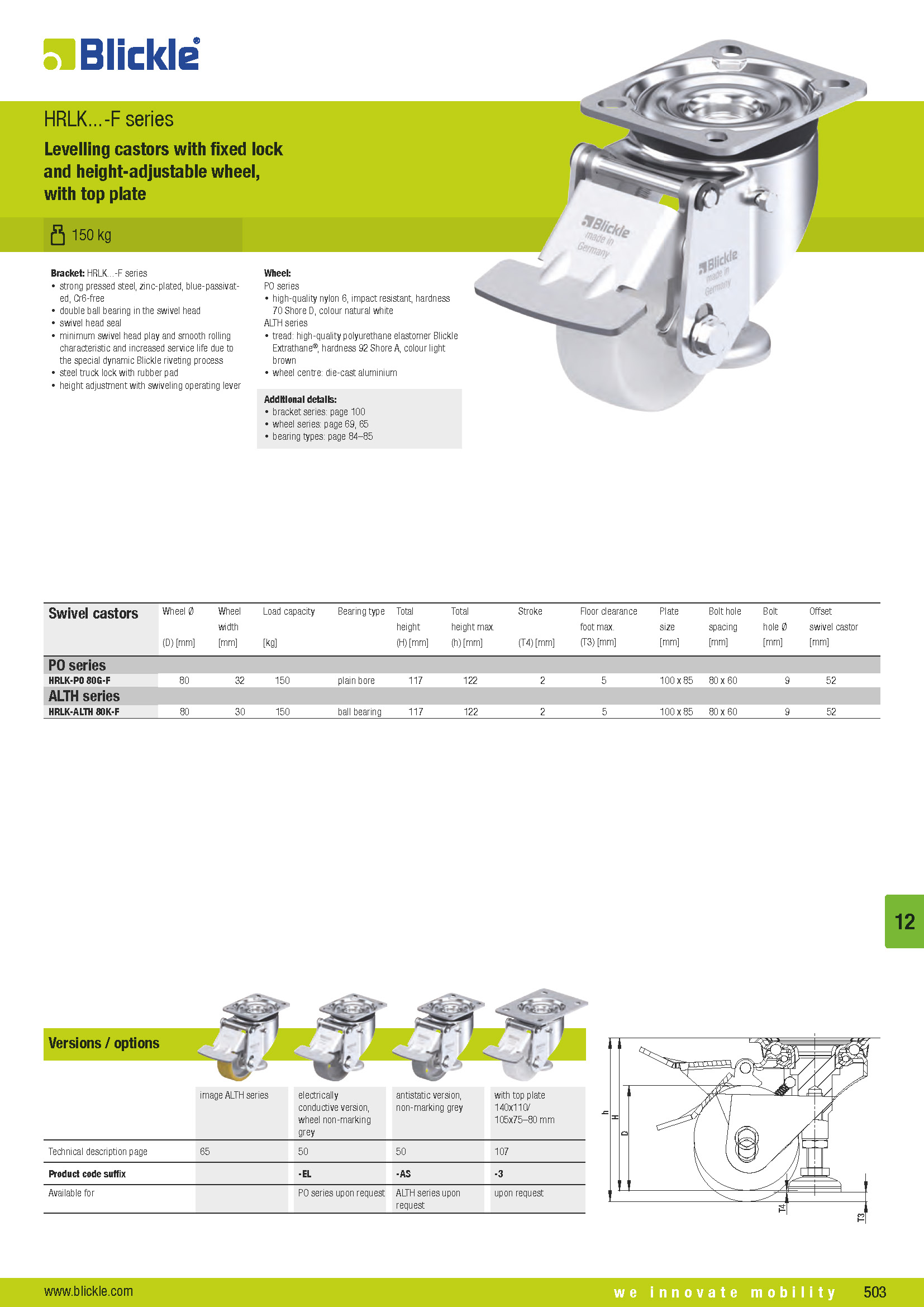 HRLK-F Levelling castors with fixed lock and height-adjustable wheel, with top plate