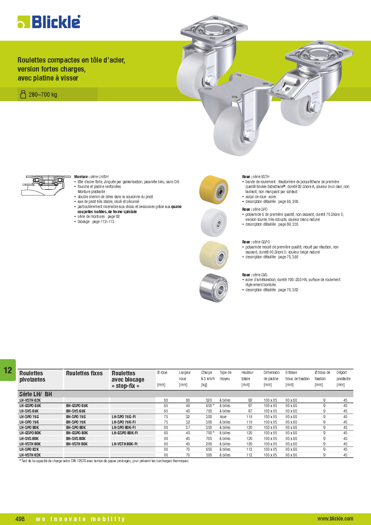 LH Roulettes compactes en tôle d’acier, version fortes charges, avec platine à visser