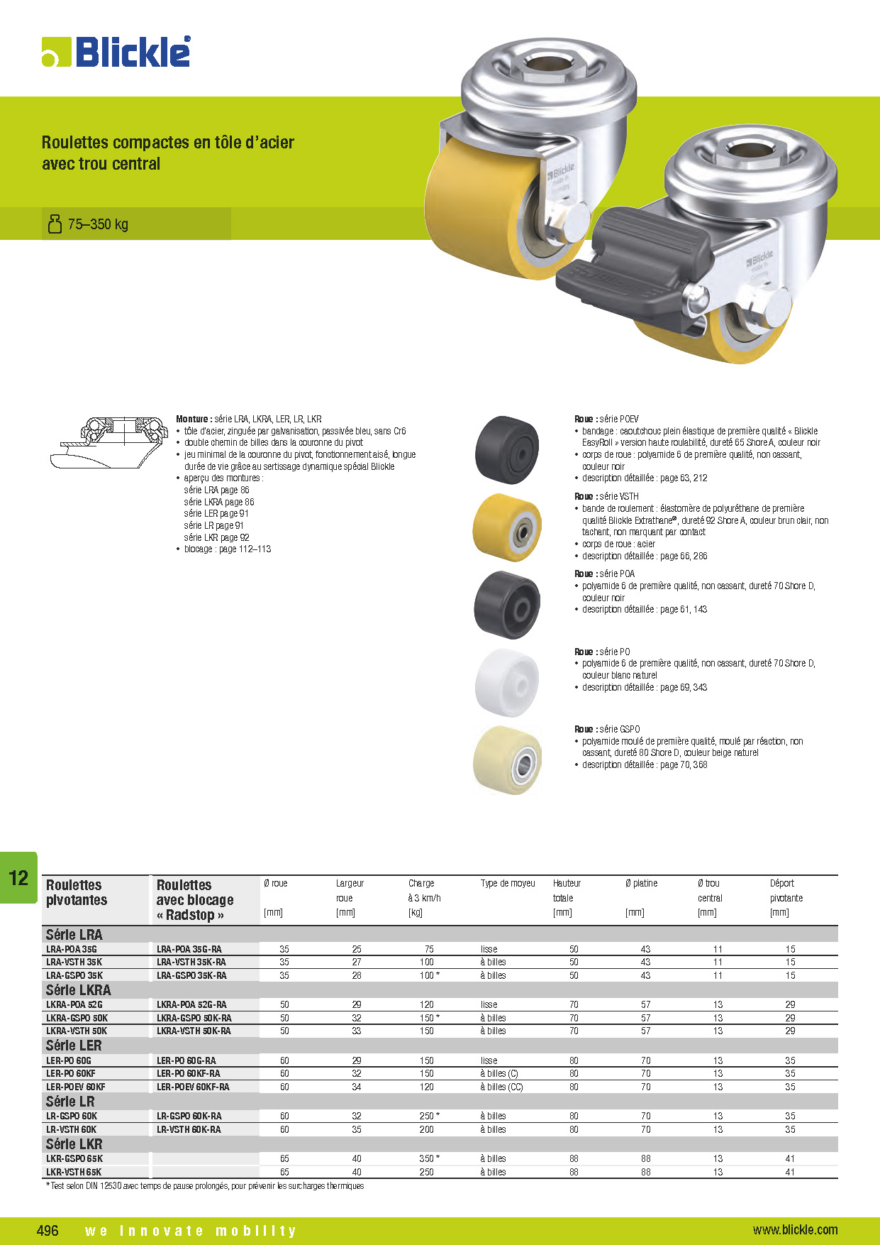 Aide à la sélection Roulettes compactes et d’immobilisation