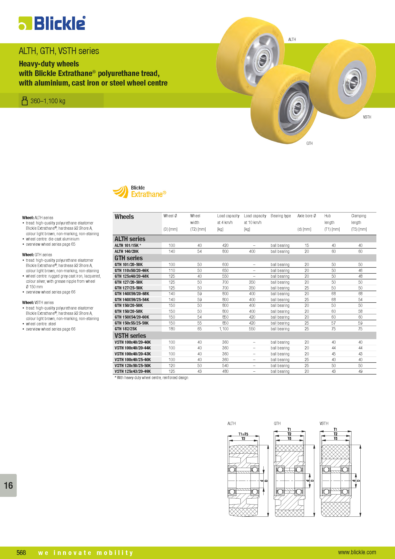 ALTH, GTH, VSTH Schwerlast-Räder mit Polyurethan-Laufbelag Blickle Extrathane®, mit Aluminium-, Guss- bzw. Stahl-Radkörper