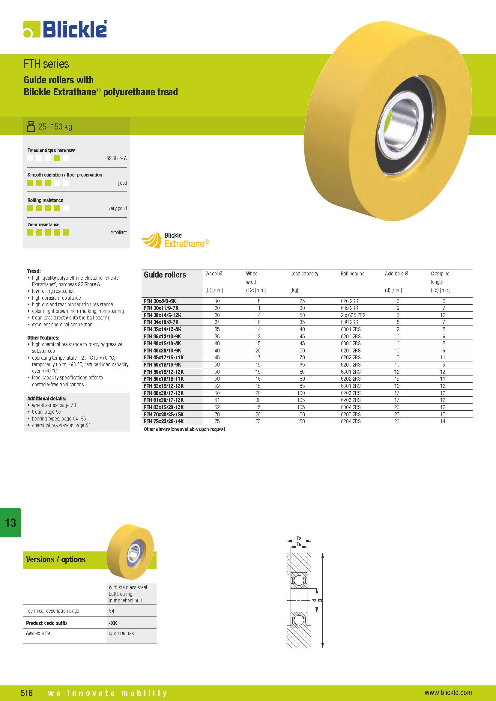 FTH Guide rollers with Blickle Extrathane® polyurethane tread