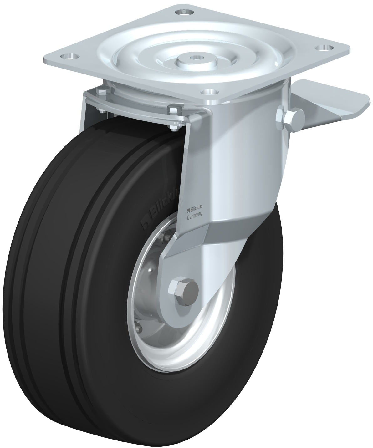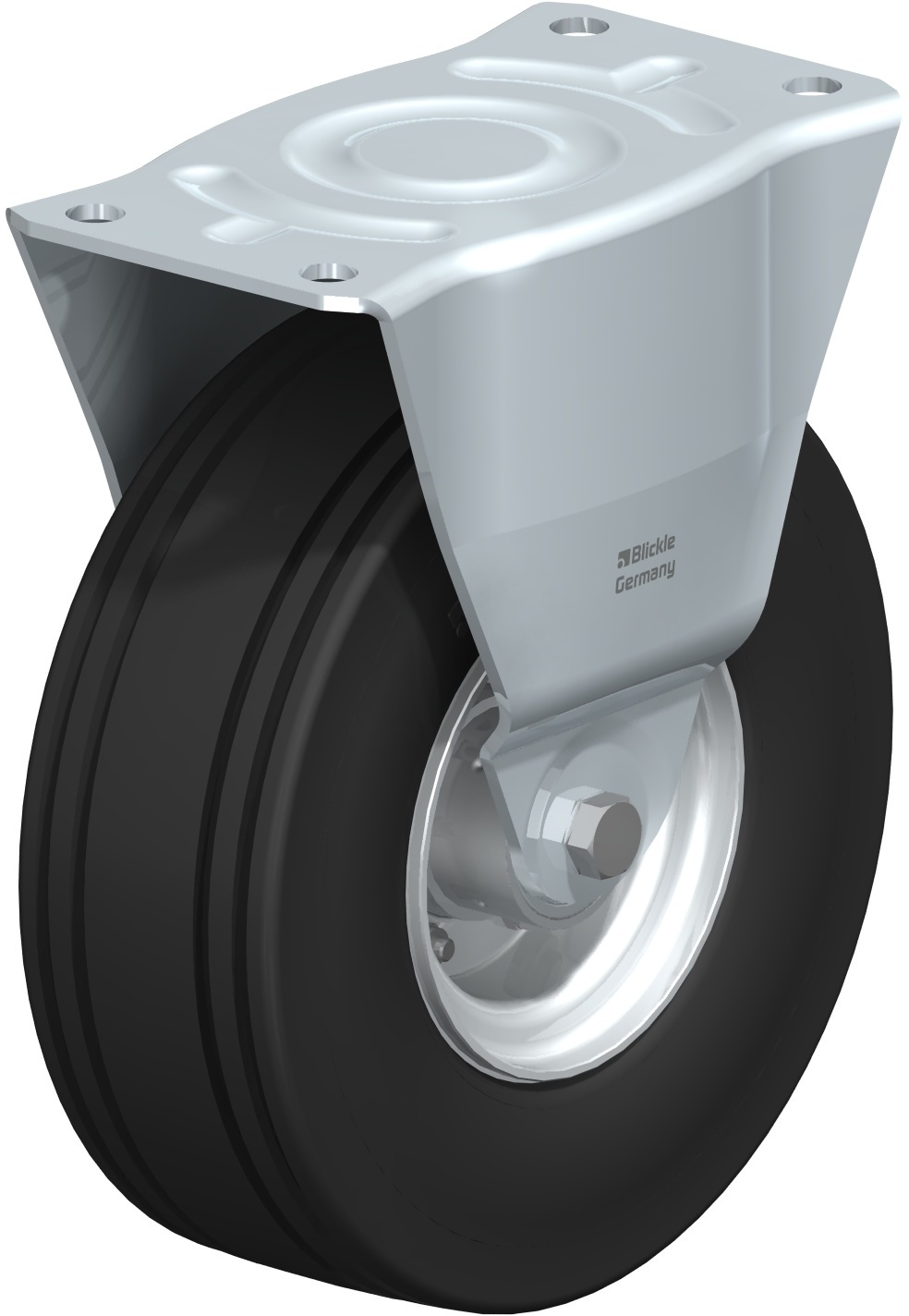 L-VLE, B-VLE Stahlblech-Rollen, mittelschwere Ausführung, mit Anschraubplatte, Schwerlast-Rad mit Super-Elastik-Vollgummireifen