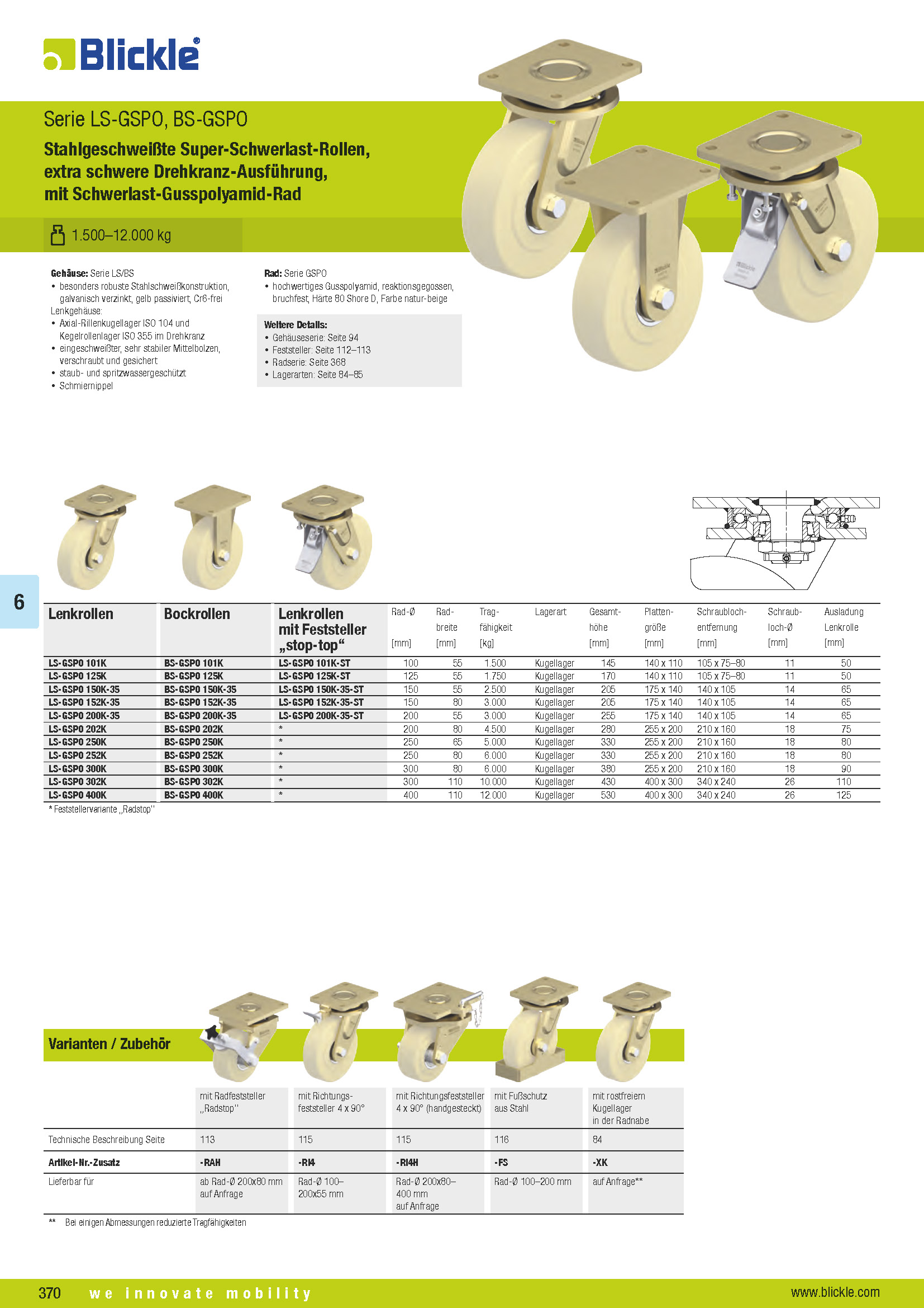 LS-GSPO, BS-GSPO Stahlgeschweißte Super-Schwerlast-Rollen, extra schwere Drehkranz-Ausführung, mit Schwerlast-Gusspolyamid-Rad