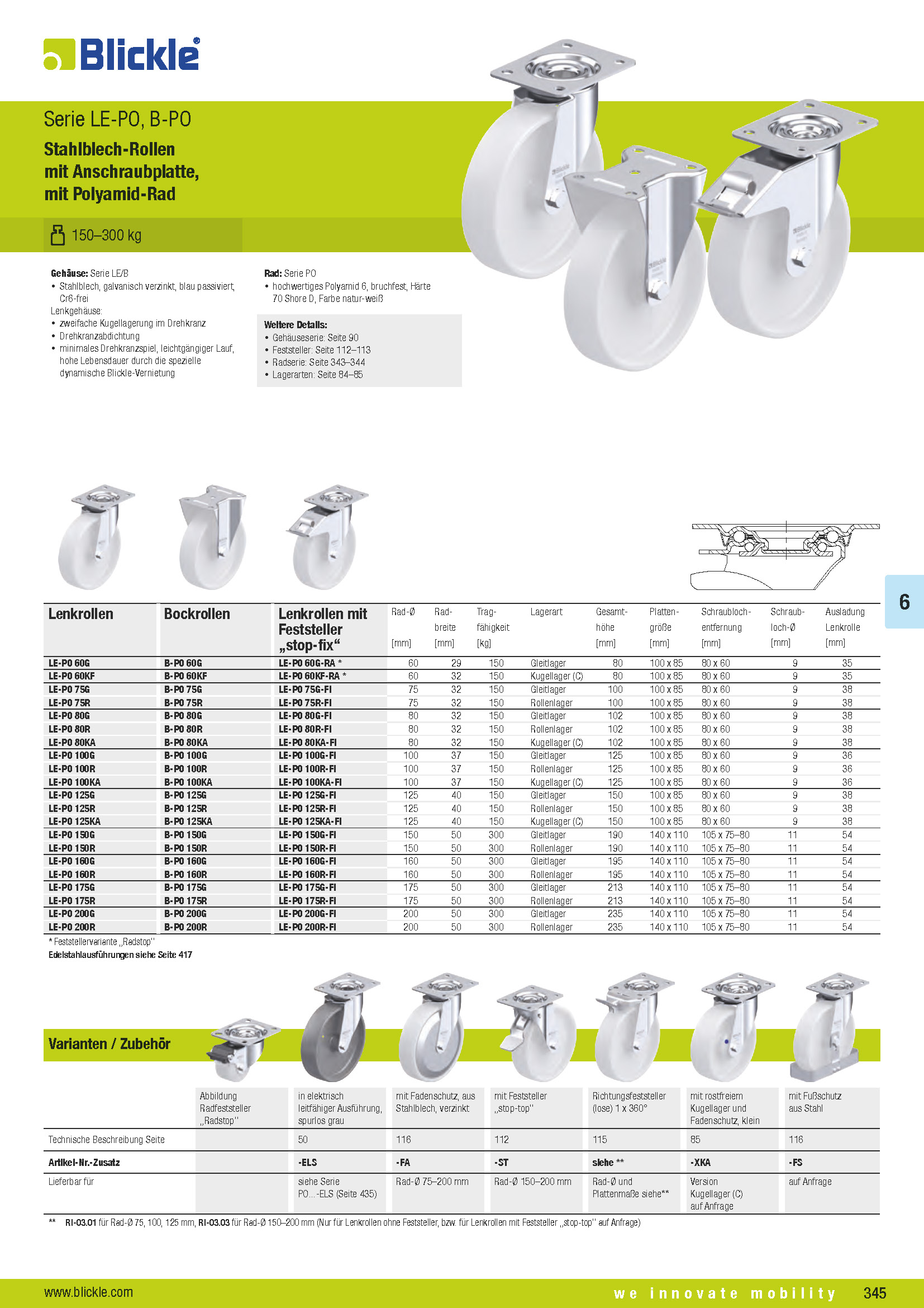 LE-PO, B-PO Stahlblech-Rollen mit Anschraubplatte, mit Polyamid-Rad