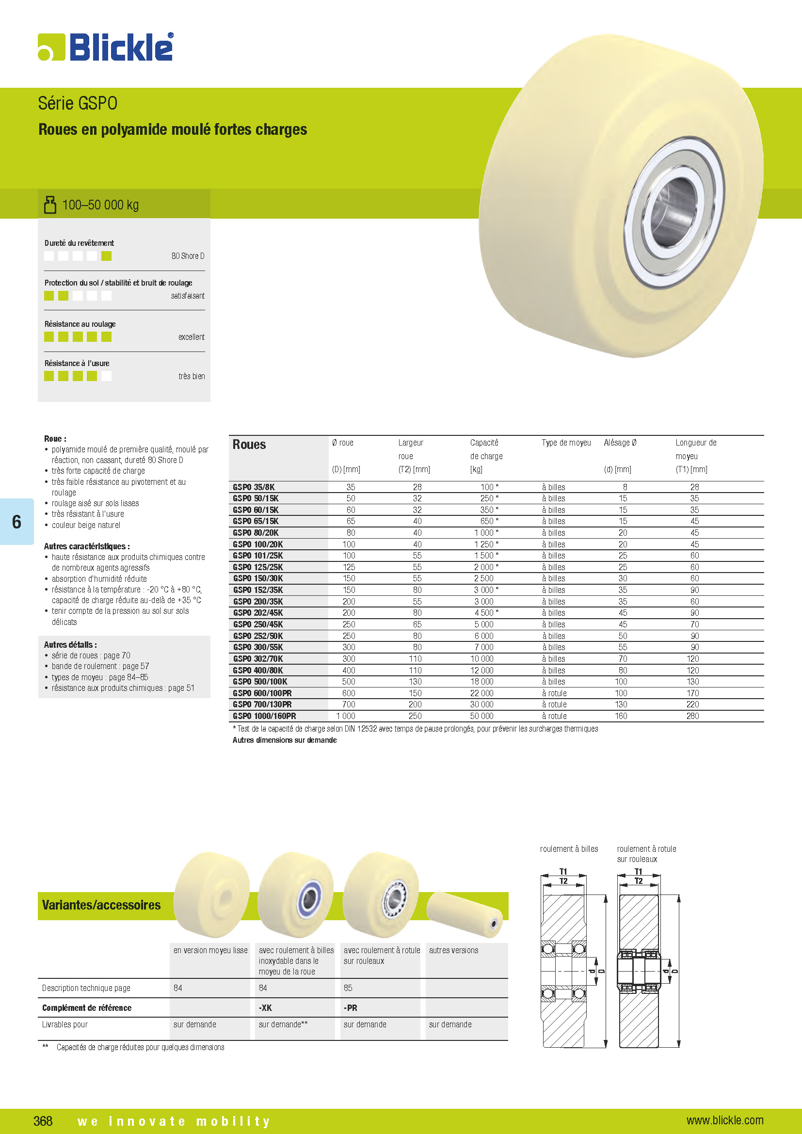 GSPO Roues en polyamide moulé fortes charges