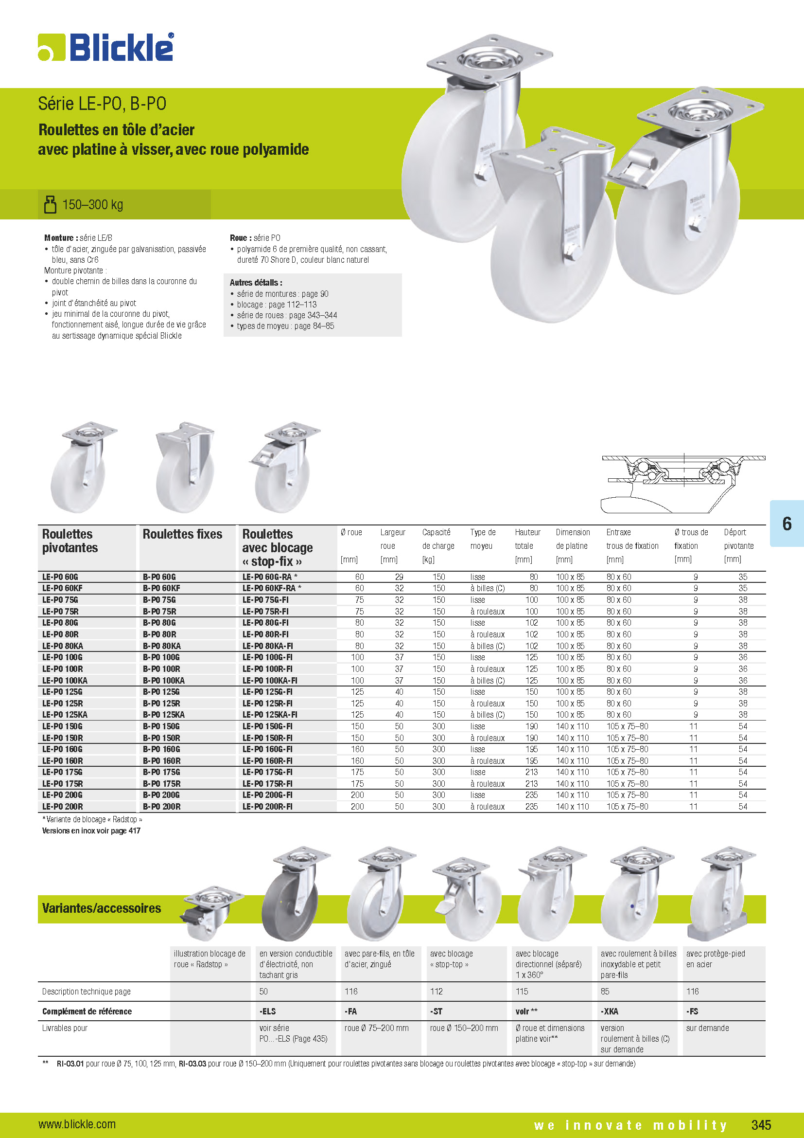 LE-PO, B-PO Roulettes en tôle d’acier avec platine à visser, avec roue polyamide