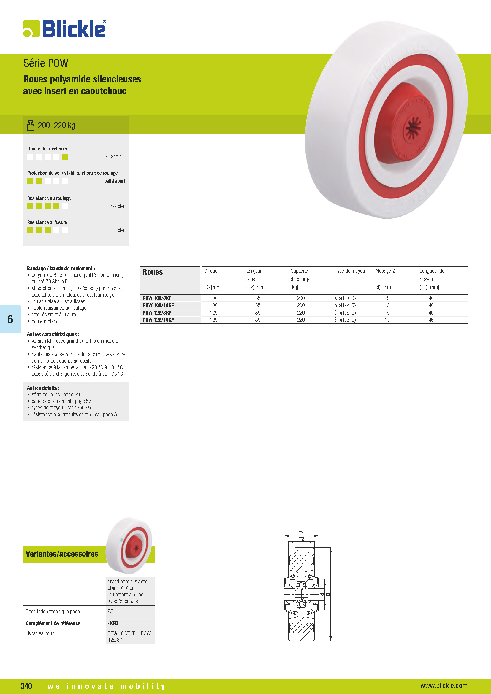 POW Roues polyamide silencieuses avec insert en caoutchouc