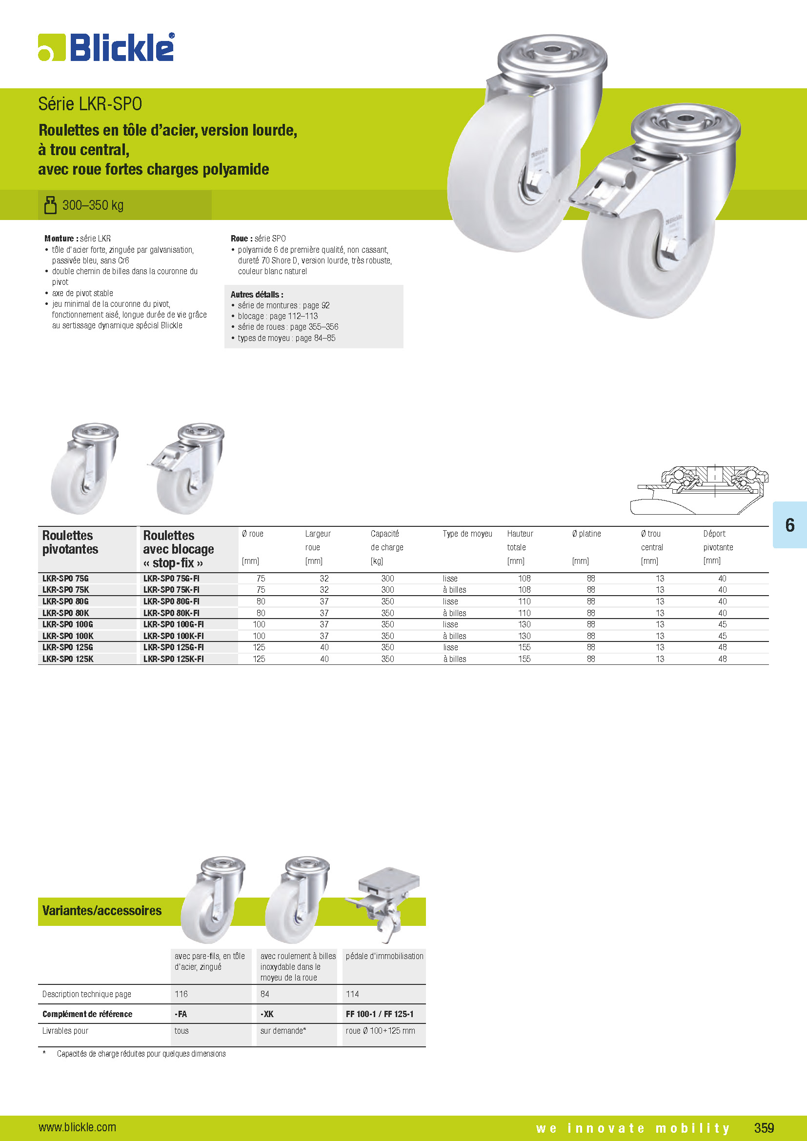 LKR-SPO Pressed steel castors, heavy-duty design, with bolt hole, with heavy-duty nylon wheel