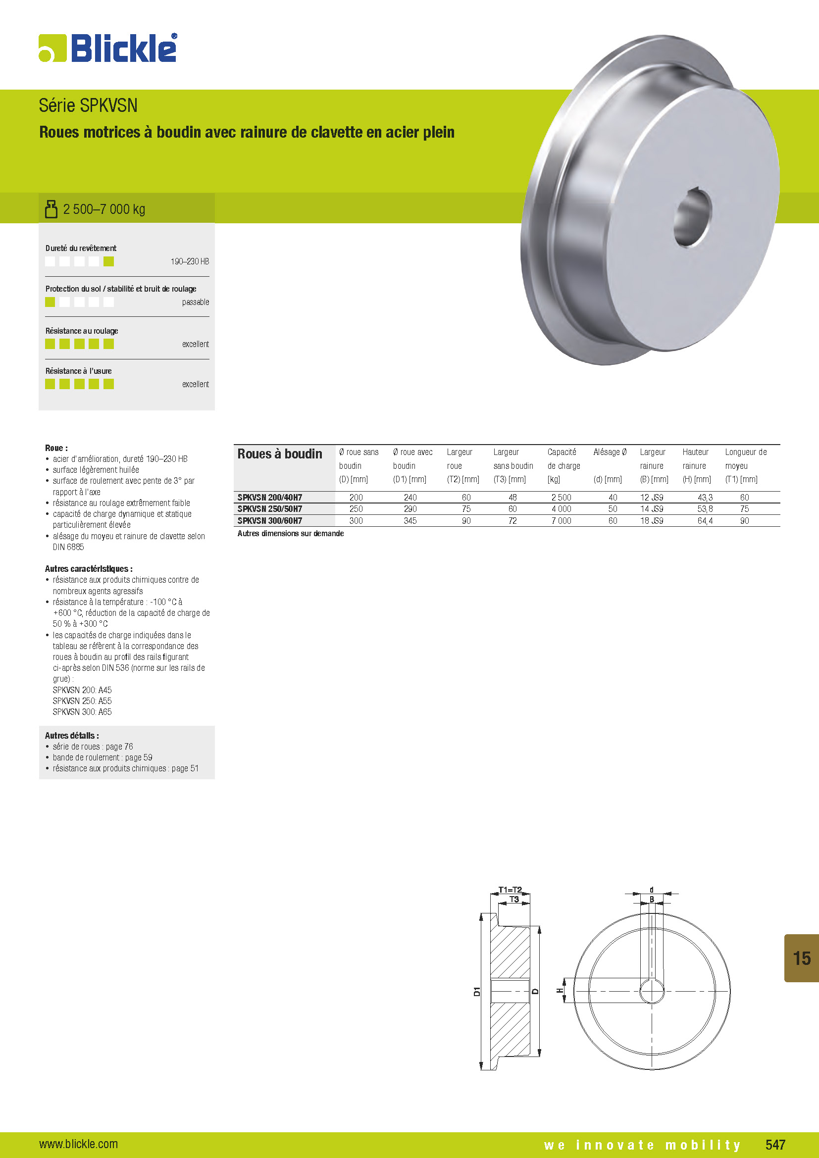 SPKVSN Roues motrices à boudin avec rainure de clavette en acier plein