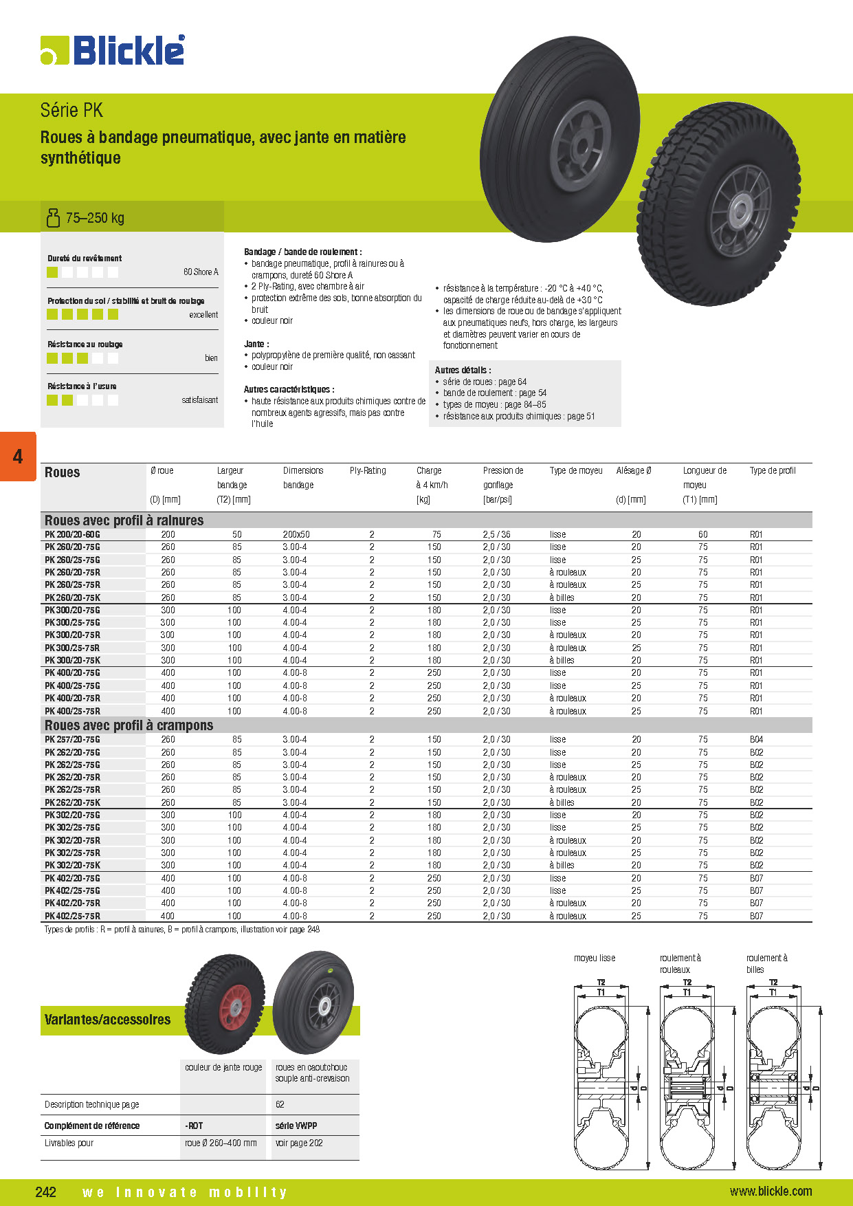 PK Roues à bandage pneumatique, avec jante en matière synthétique