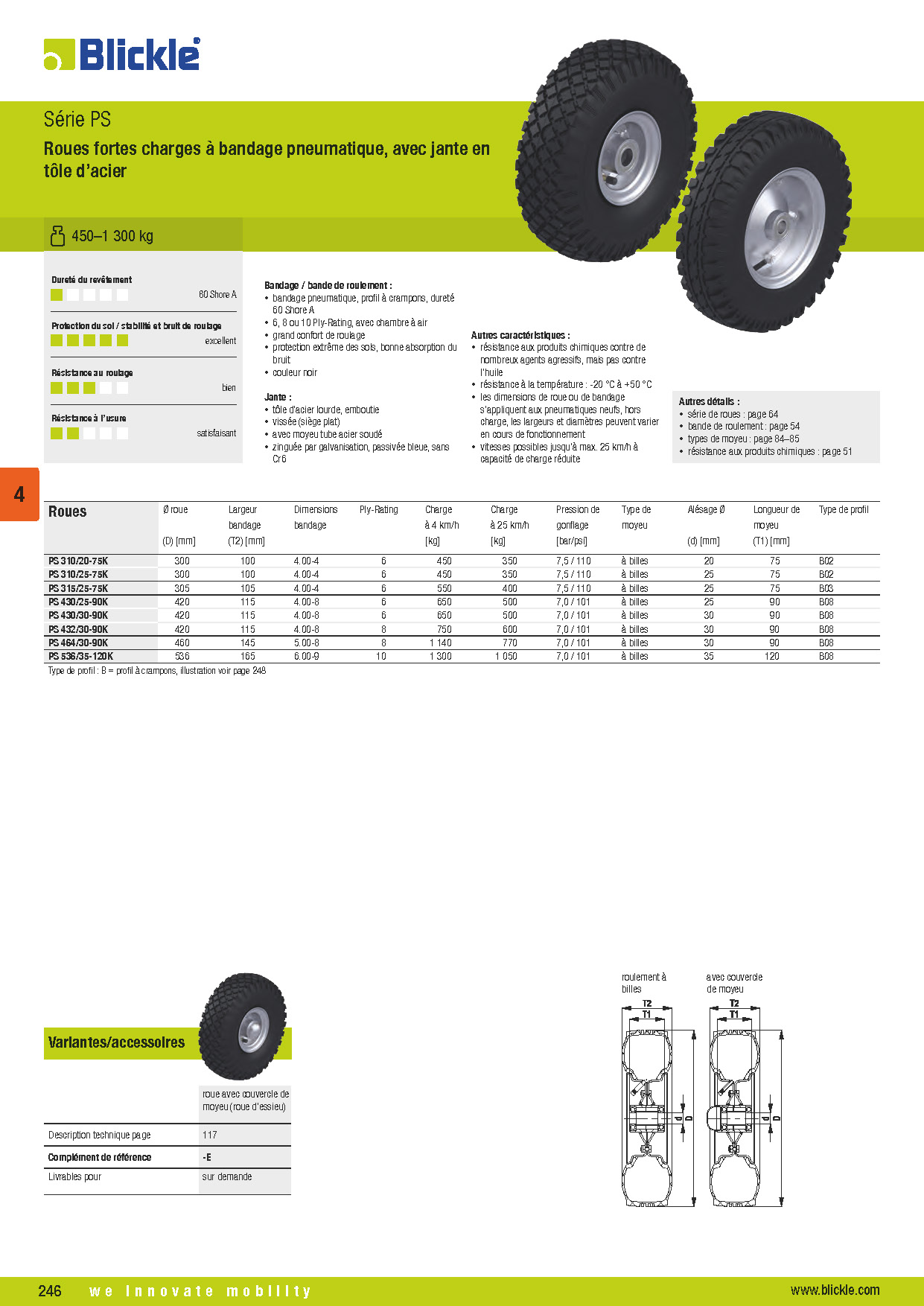 PS Roues fortes charges à bandage pneumatique, avec jante en tôle d’acier