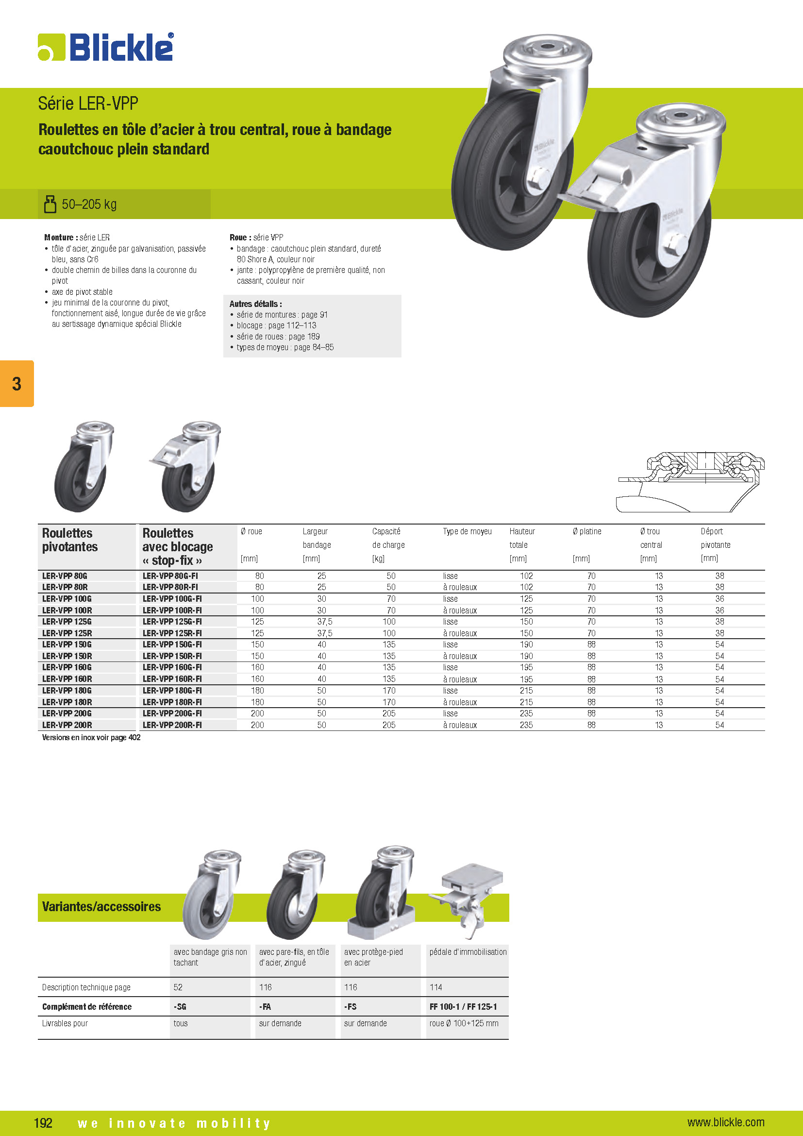 Roulettes avec blocage "stop-fix" Roulement à rouleaux R