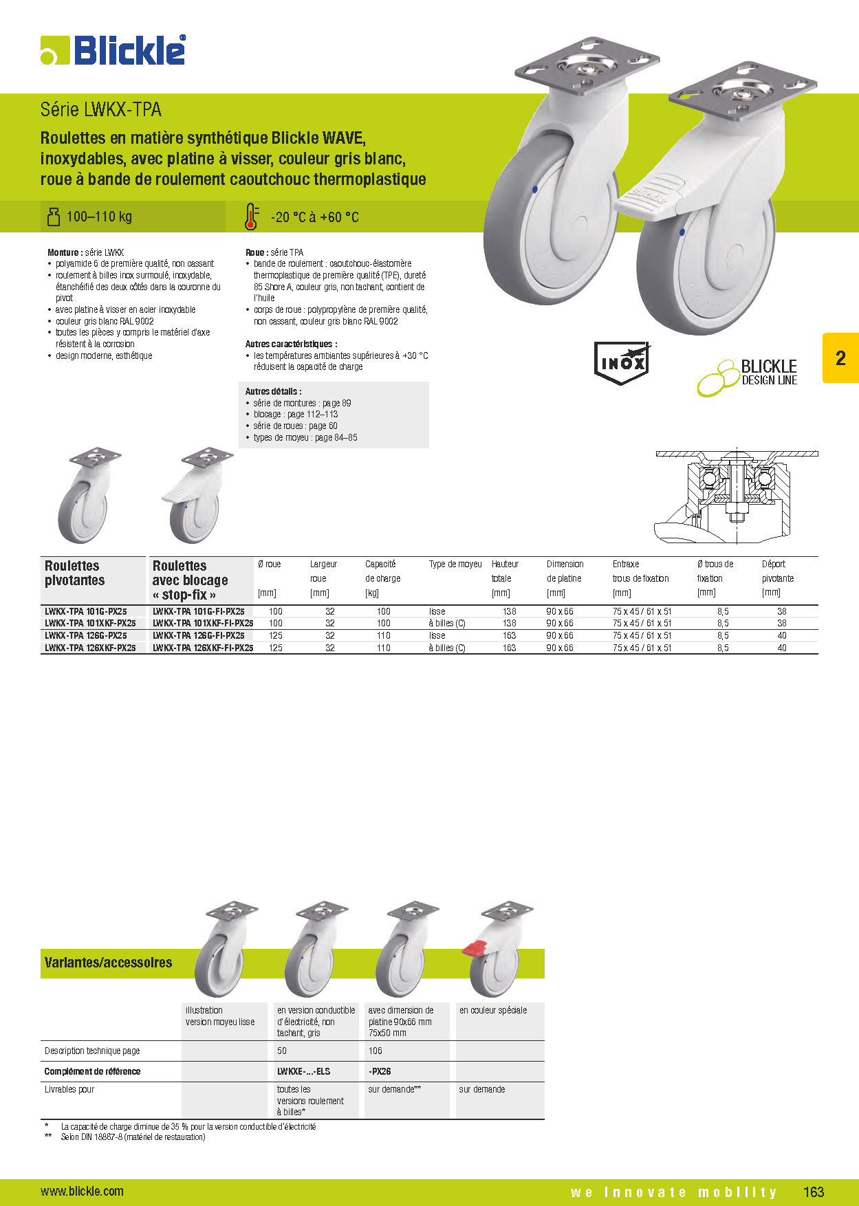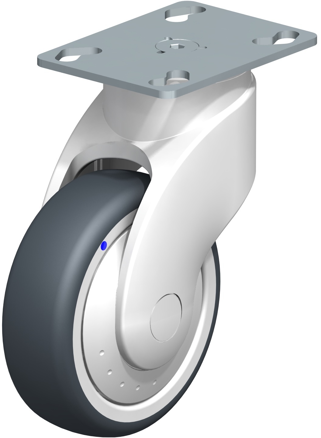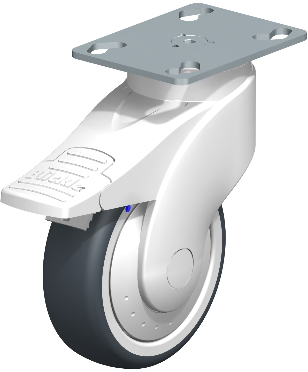 LWKX-TPA Roulettes en matière synthétique Blickle WAVE, inoxydables, avec platine à visser, couleur gris blanc, roue à bande de roulement caoutchouc thermoplastique