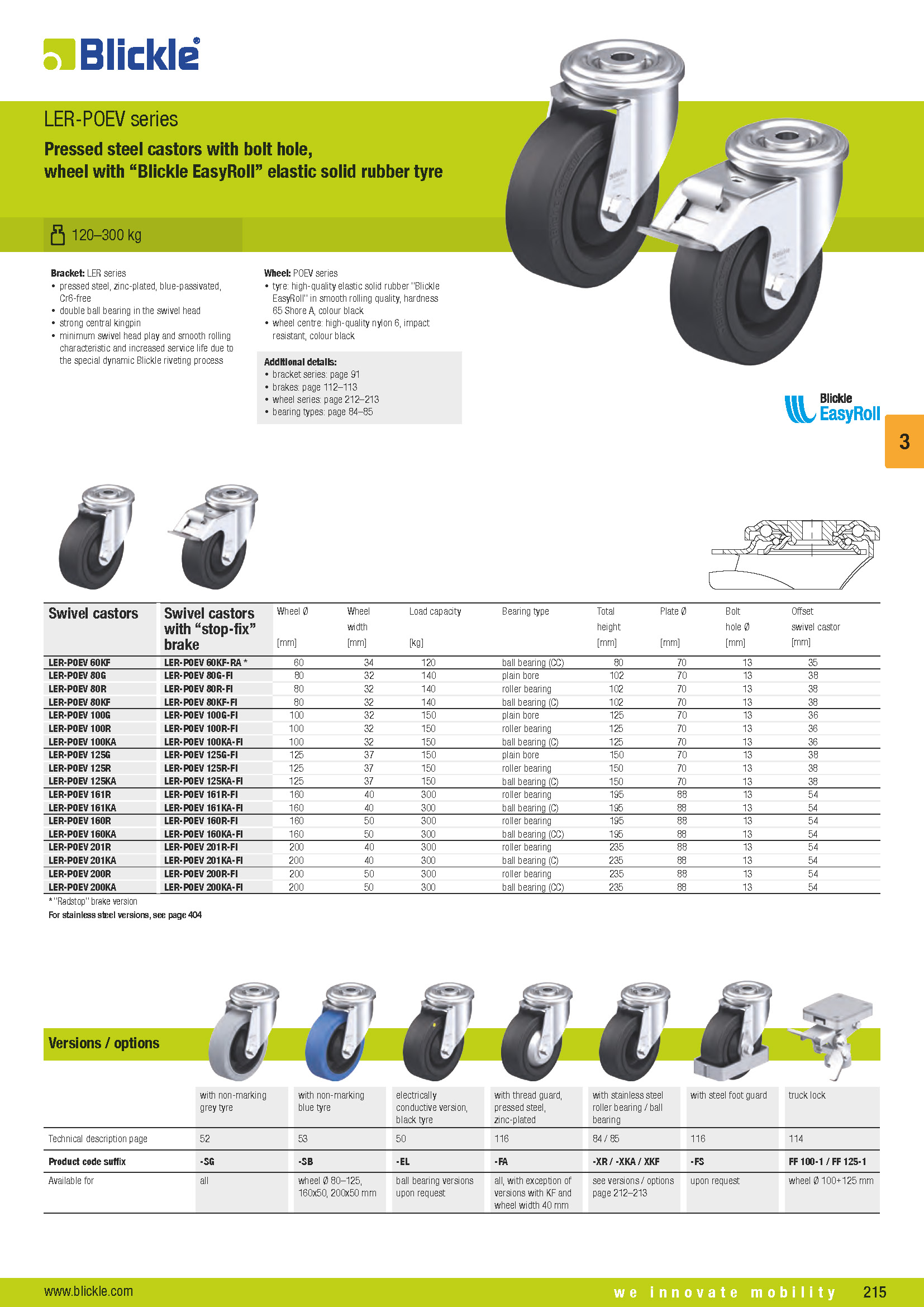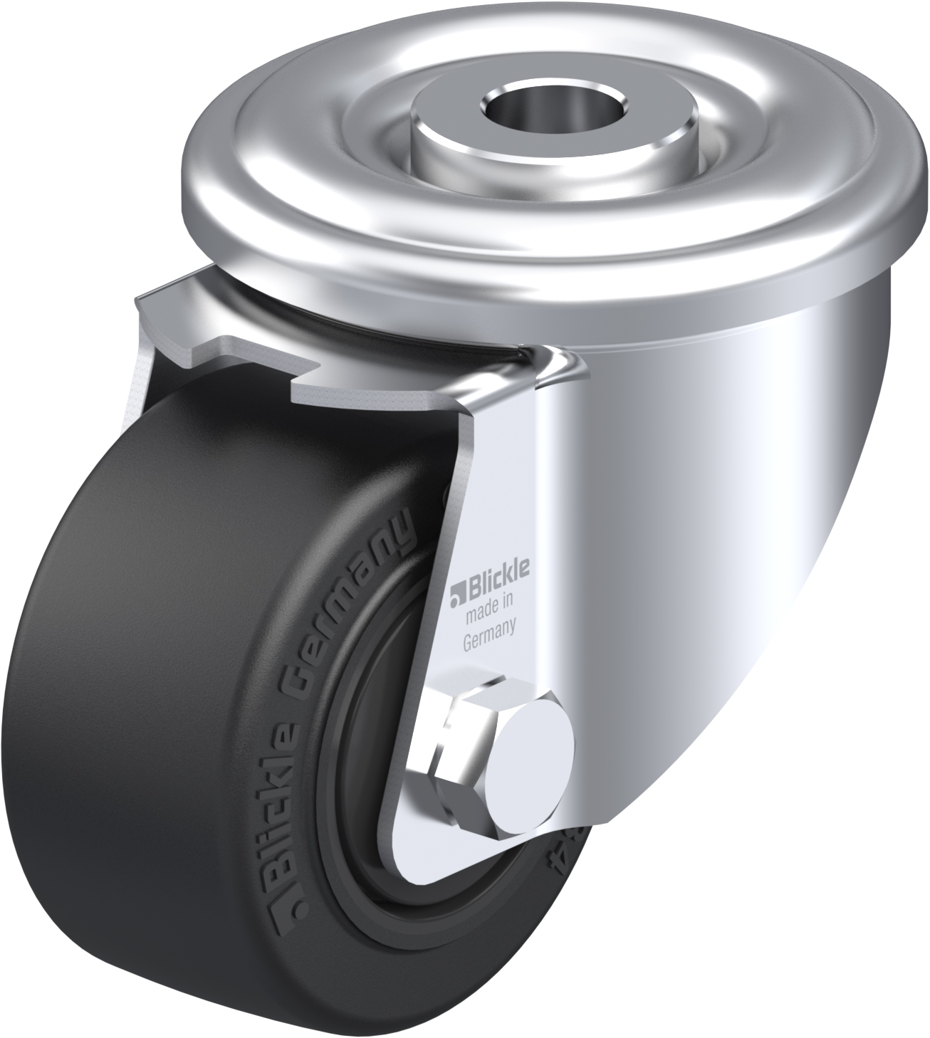 LER-POEV Pressed steel castors with bolt hole, wheel with “Blickle EasyRoll” elastic solid rubber tyre