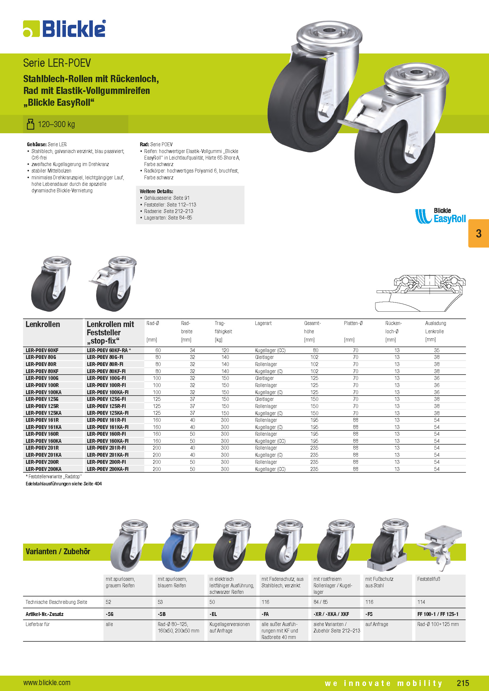 LER-POEV Stahlblech-Rollen mit Rückenloch, Rad mit Elastik-Vollgummireifen „Blickle EasyRoll“