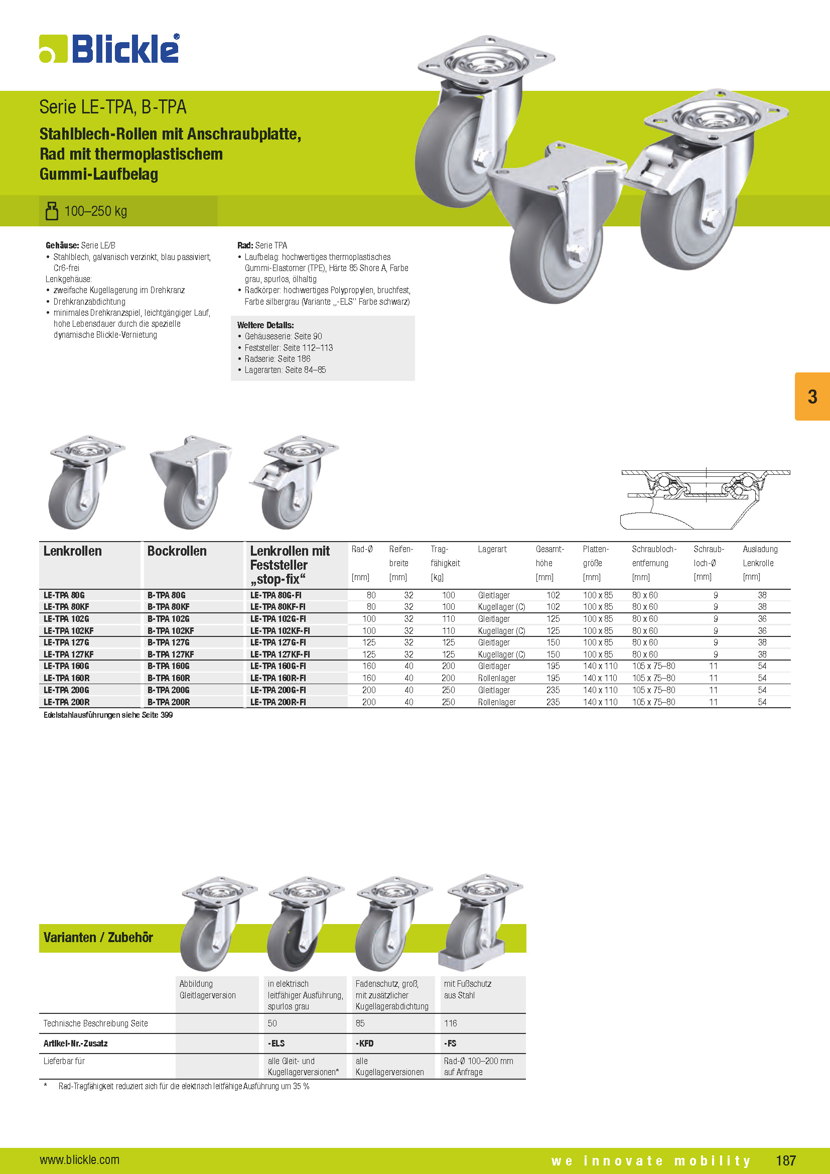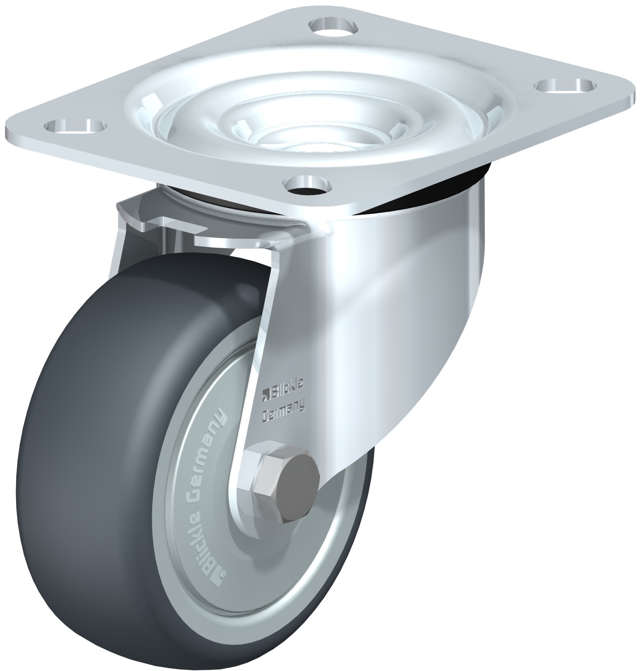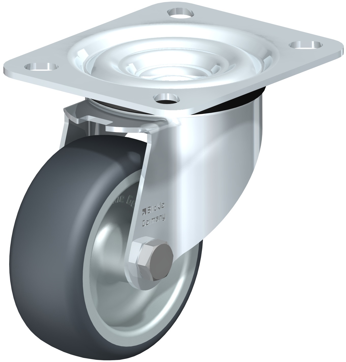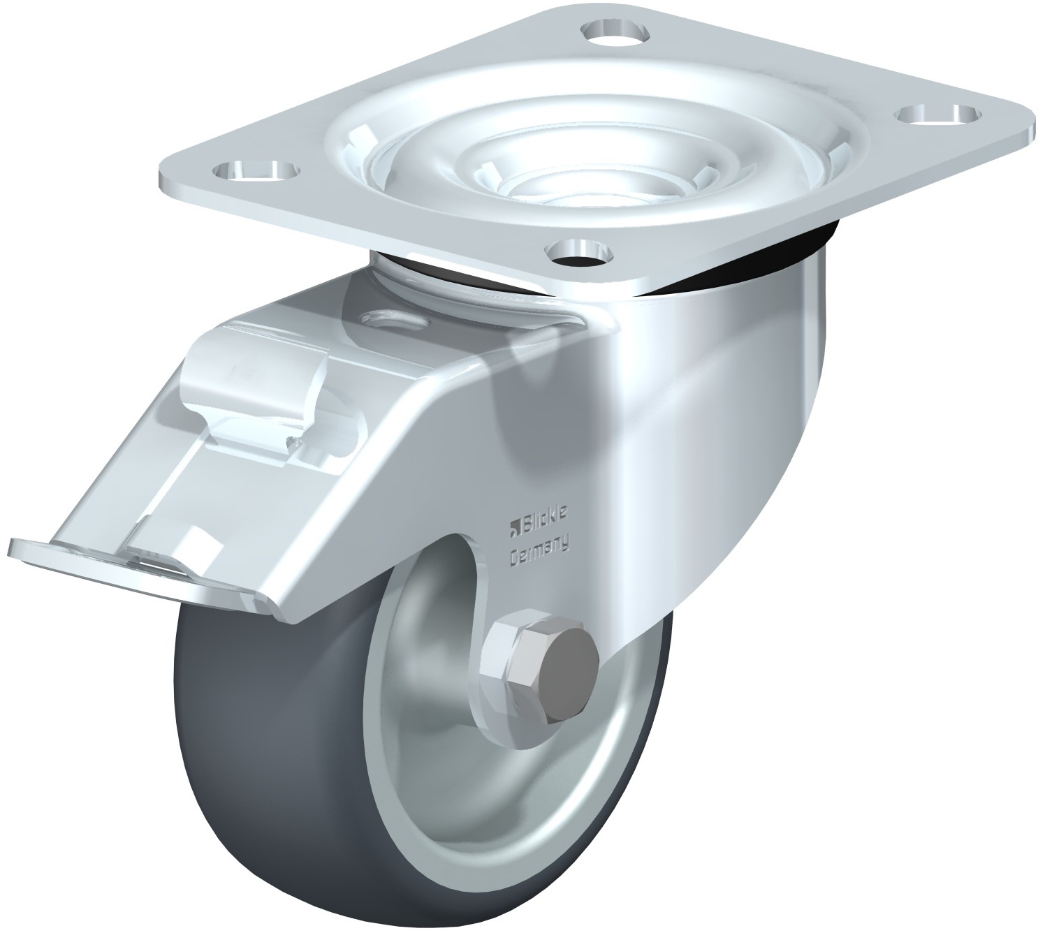 LE-TPA, B-TPA Pressed steel castors with top plate, wheel with thermoplastic rubber tread