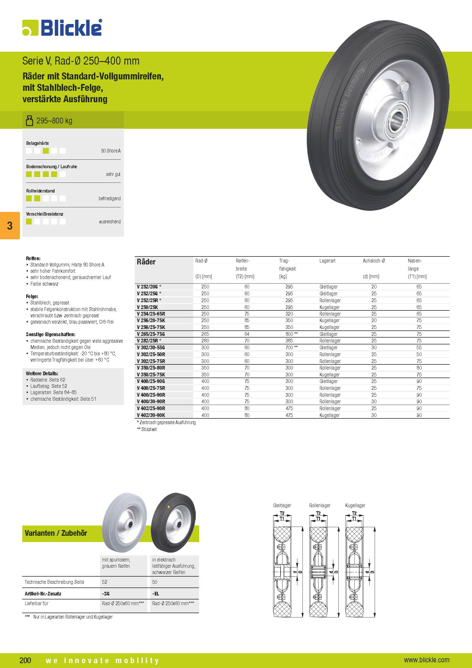 V, Rad-Ø 250–400 mm Räder mit Standard-Vollgummireifen, mit Stahlblech-Felge, verstärkte Ausführung