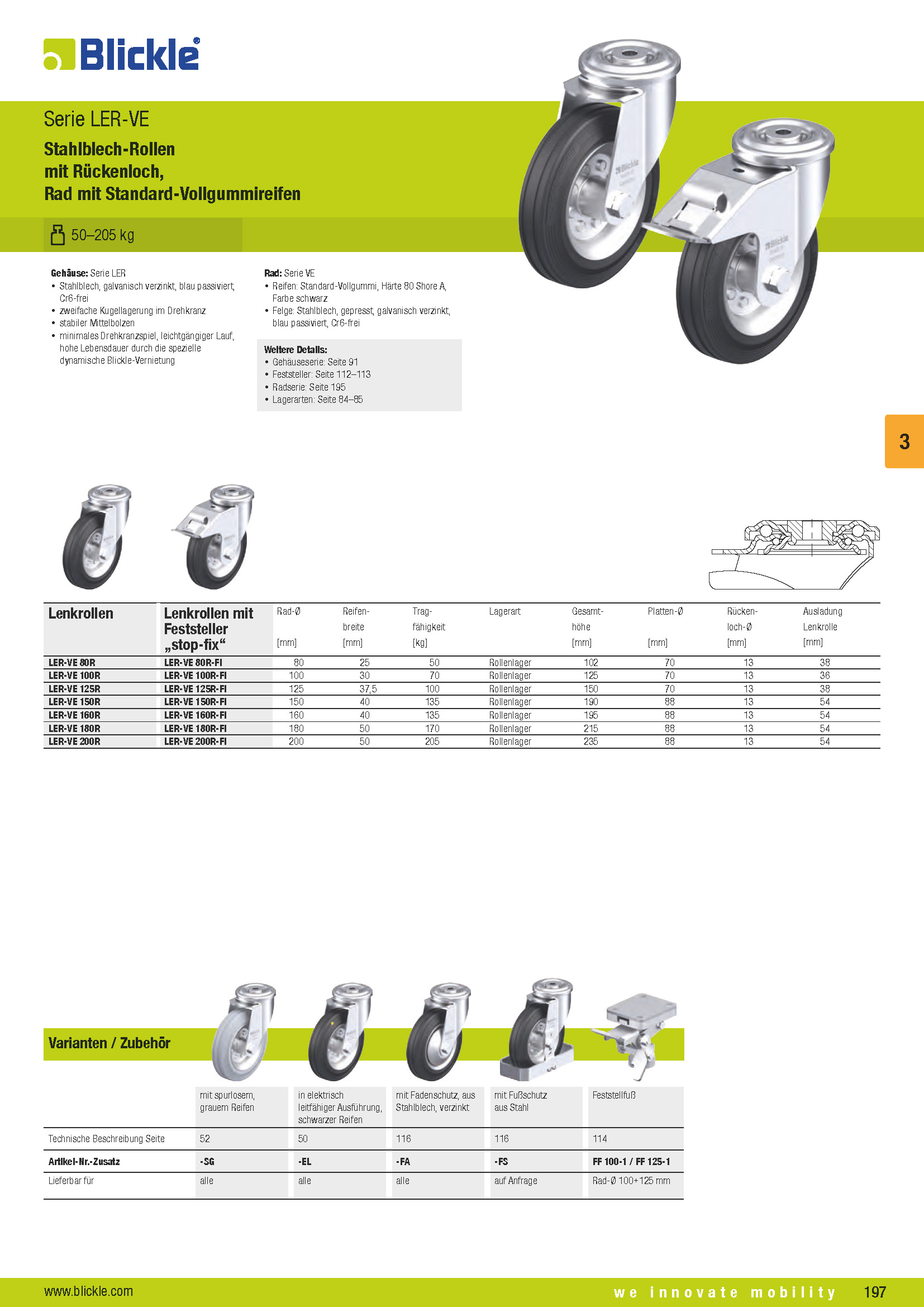 Lenkrollen mit Feststeller „stop-fix“ mit Roller bearing R