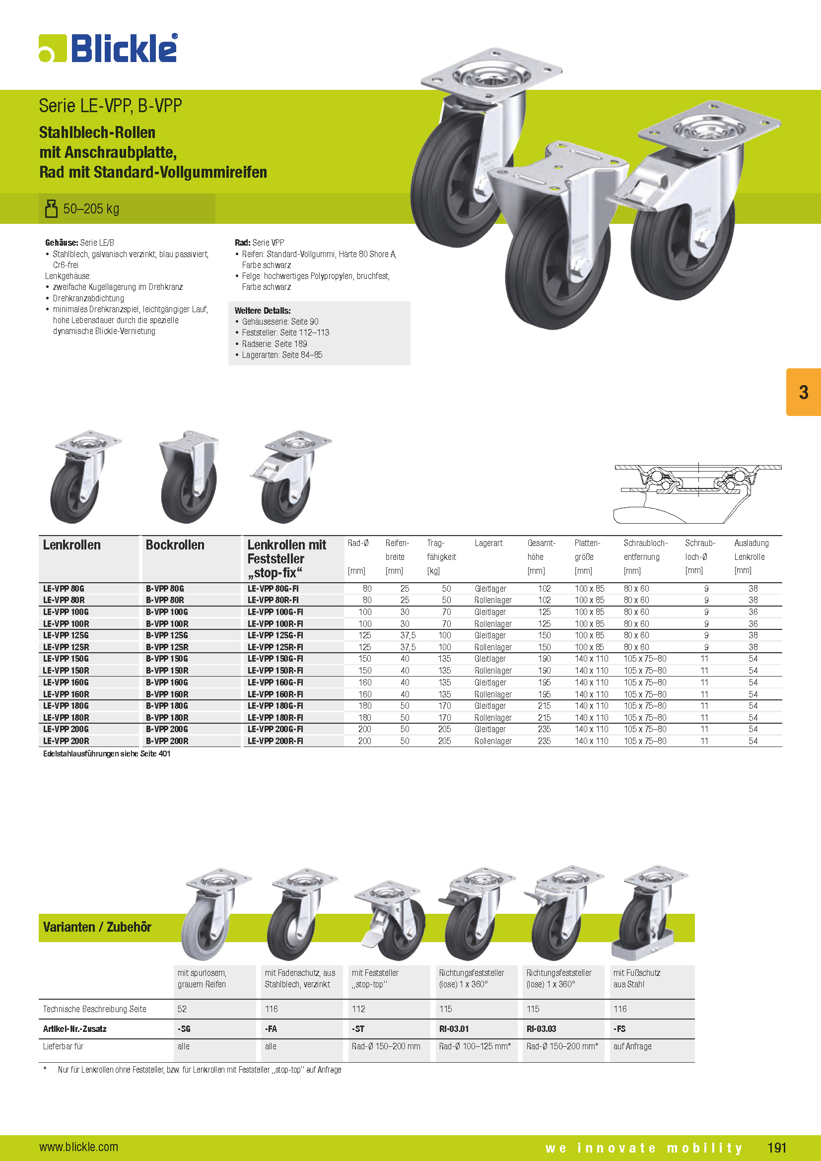 LE-VPP, B-VPP Stahlblech-Rollen mit Anschraubplatte, Rad mit Standard-Vollgummireifen