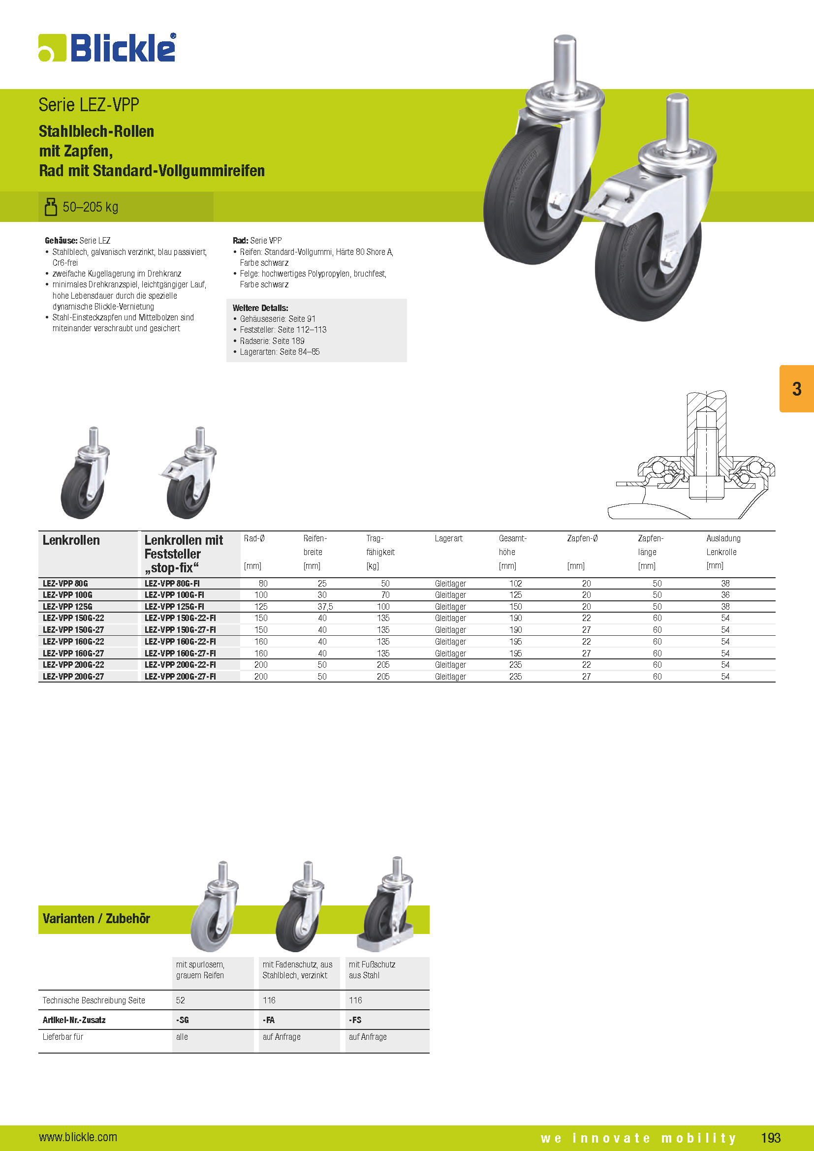 Preview: Lenkrolle mit Gleitlager G