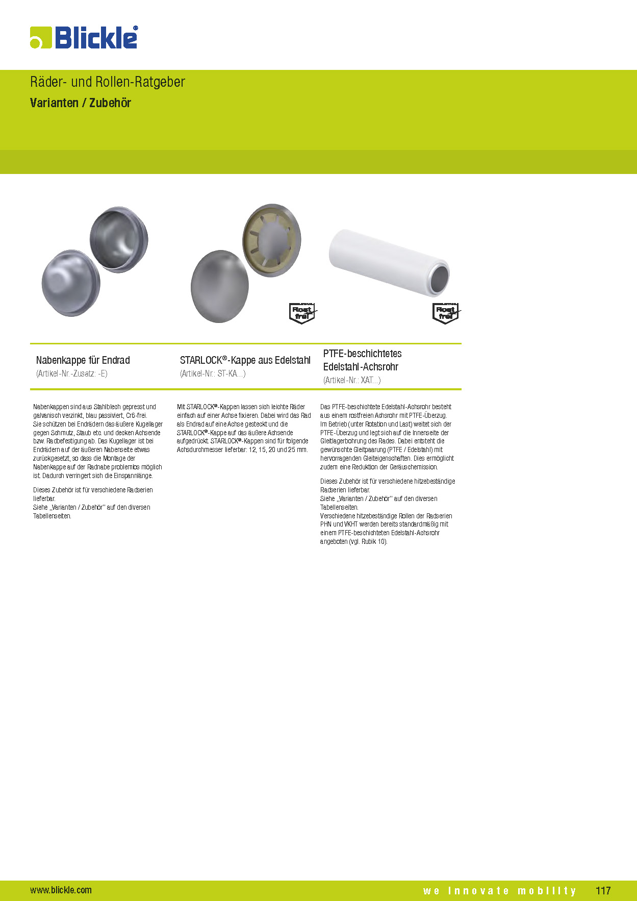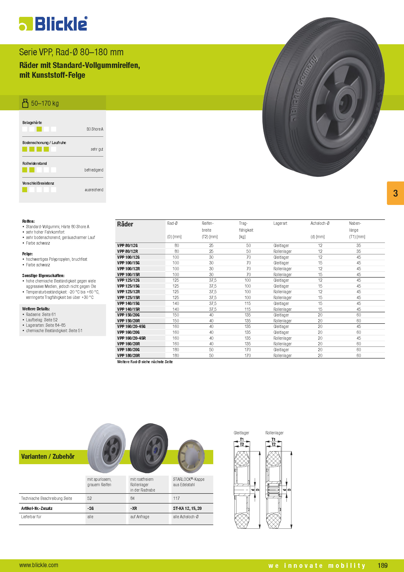 VPP Rad-Ø 80–180 mm Räder mit Standard-Vollgummireifen, mit Kunststoff-Felge